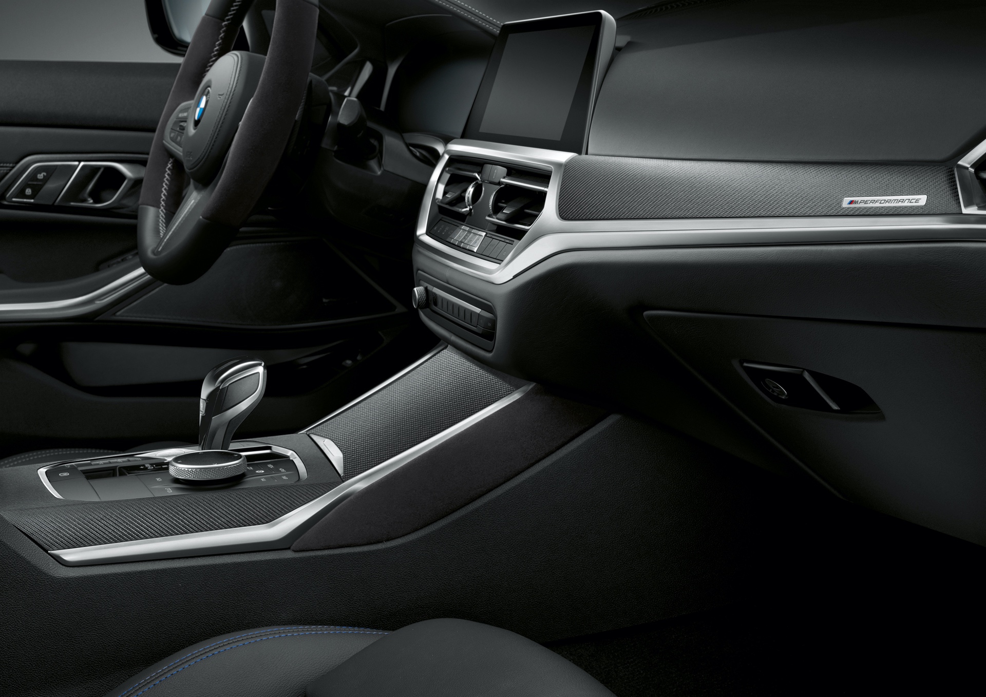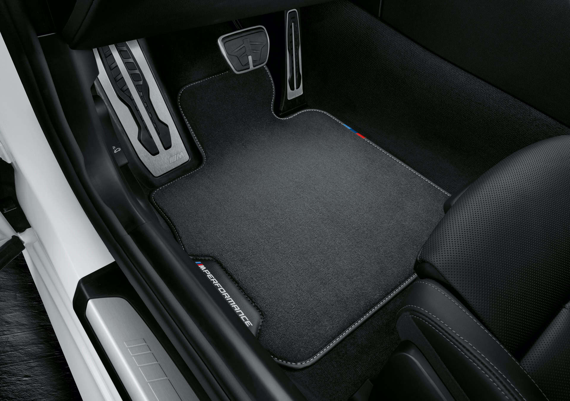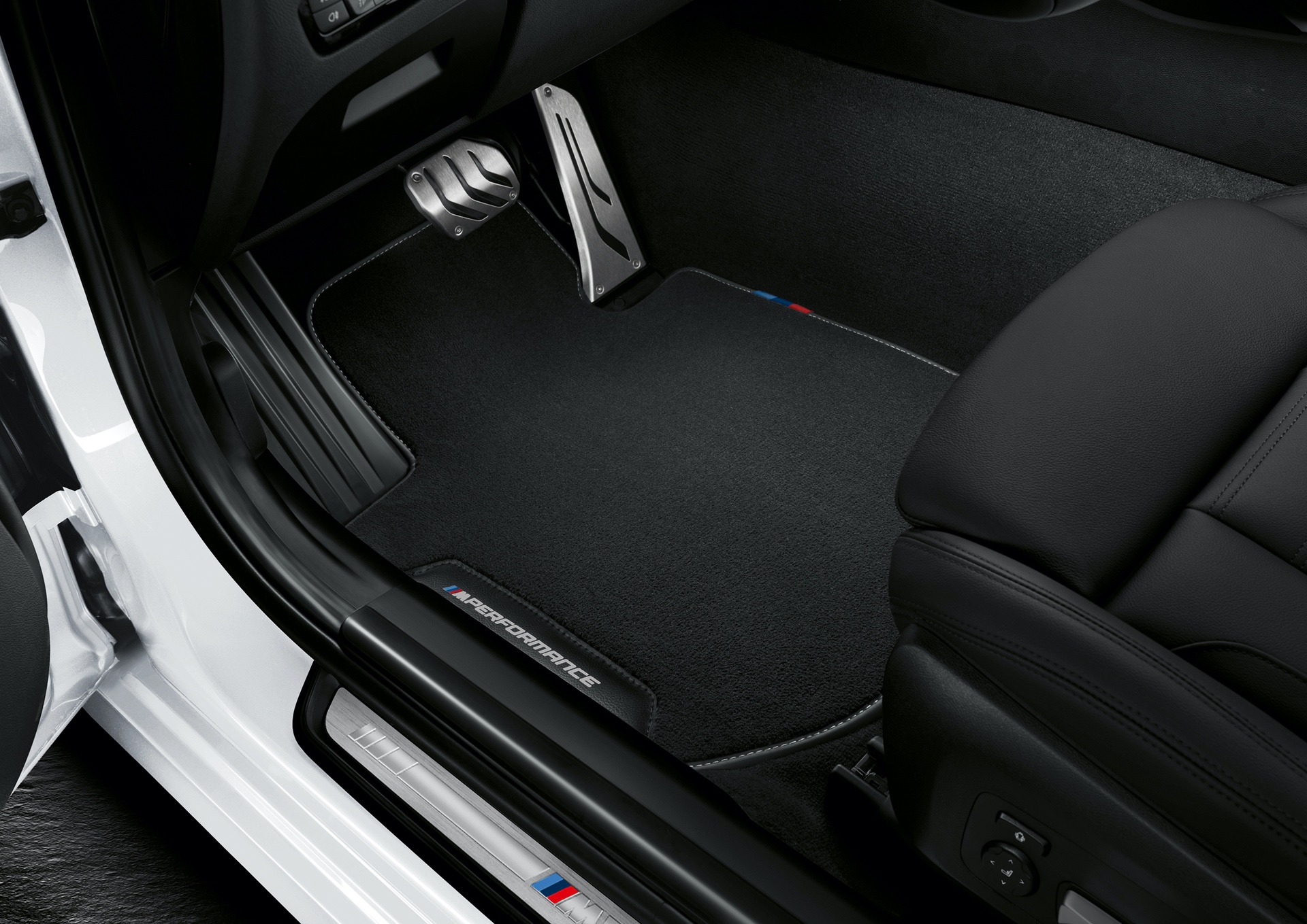In the interior, the M Performance steering wheel has pronounced grip areas covered with Alcantara. The M Performance steering wheel trim elements are also available in carbon fiber/Alcantara or carbon fiber/leather. In the footwell, the M Performance floor mats add a touch of sporty flair.