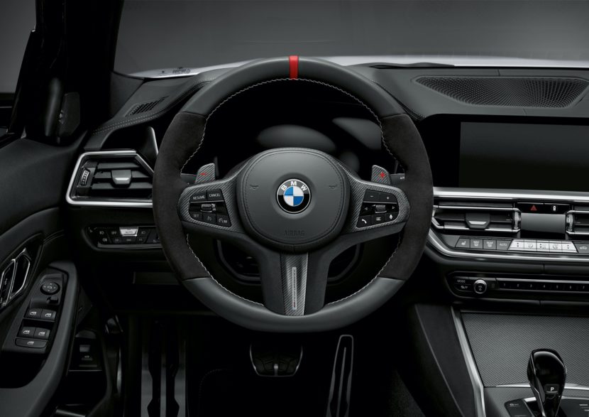 It also has a red central marking in the 12 o’clock position as well as a silver-grey, hand crafted cross-stitch seam. The M Performance steering wheel can be additionally fitted with the M Performance carbon fiber steering wheel trim, and M Performance carbon fiber shift paddles are also available to boost the car’s motor racing look. They feature carbon fabric instead of the standard chrome surface.