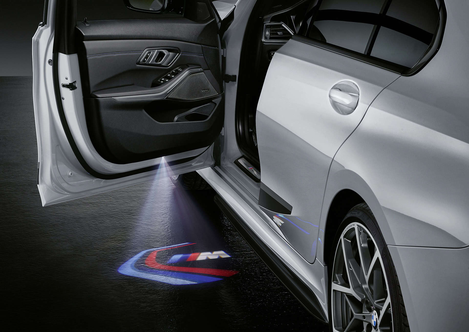 BMW LED door projectors are available to replace the standard entry light. In addition to the BMW logo and the BMW M logo, the slide set also includes three different M Performance logos. These can be interchanged at will. There is also a stylish M Performance key holder.