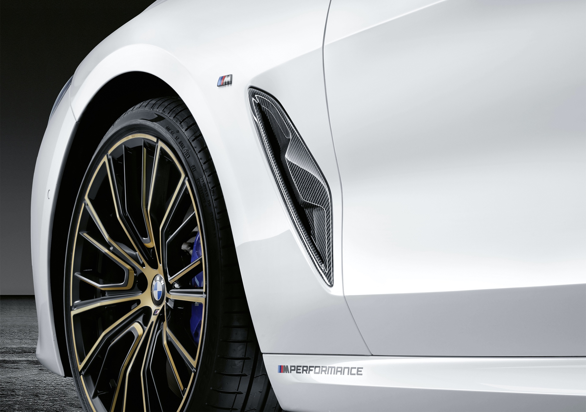 Both the appearance and the driving dynamics of the new BMW 8 Series Gran Coupé benefit from the 20-inch M Performance light alloy wheels offered in two designs. The 20-inch M Performance forged wheel Multi-Spoke 732 M is offered exclusively in the bicolor look Night Gold burnished and gloss-milled. The likewise weight-optimized, forged 20-inch M Performance wheel 763 M in Frozen Gold has a milled M Performance inscription on the rim flange and is supplied as a complete wheel set with sports tires.