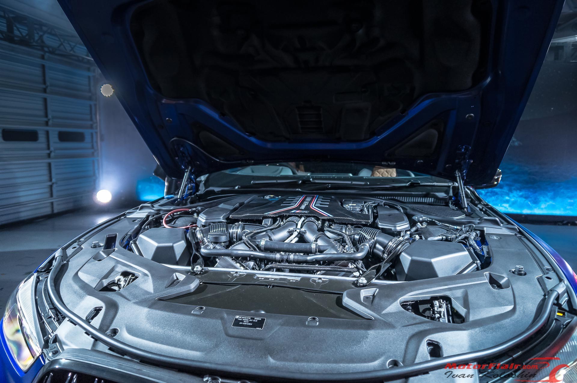 Under the long, sculpted hood of the M8 lies essentially the same engine as in the F90 BMW M5. So it’s a 4.4 liter twin-turbocharged V8 that, in standard guise, makes 600 hp and 553 lb-ft of torque. Those are the same figures as the standard M5 and that’s honestly to be expected.