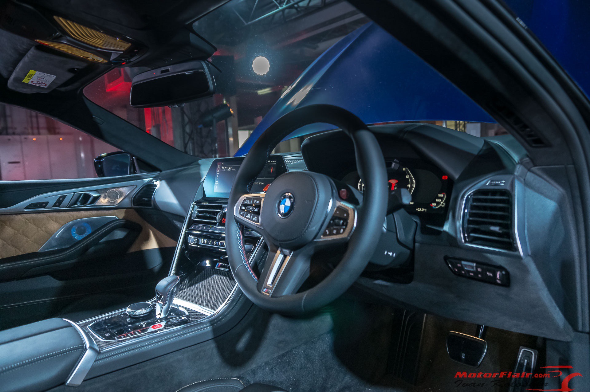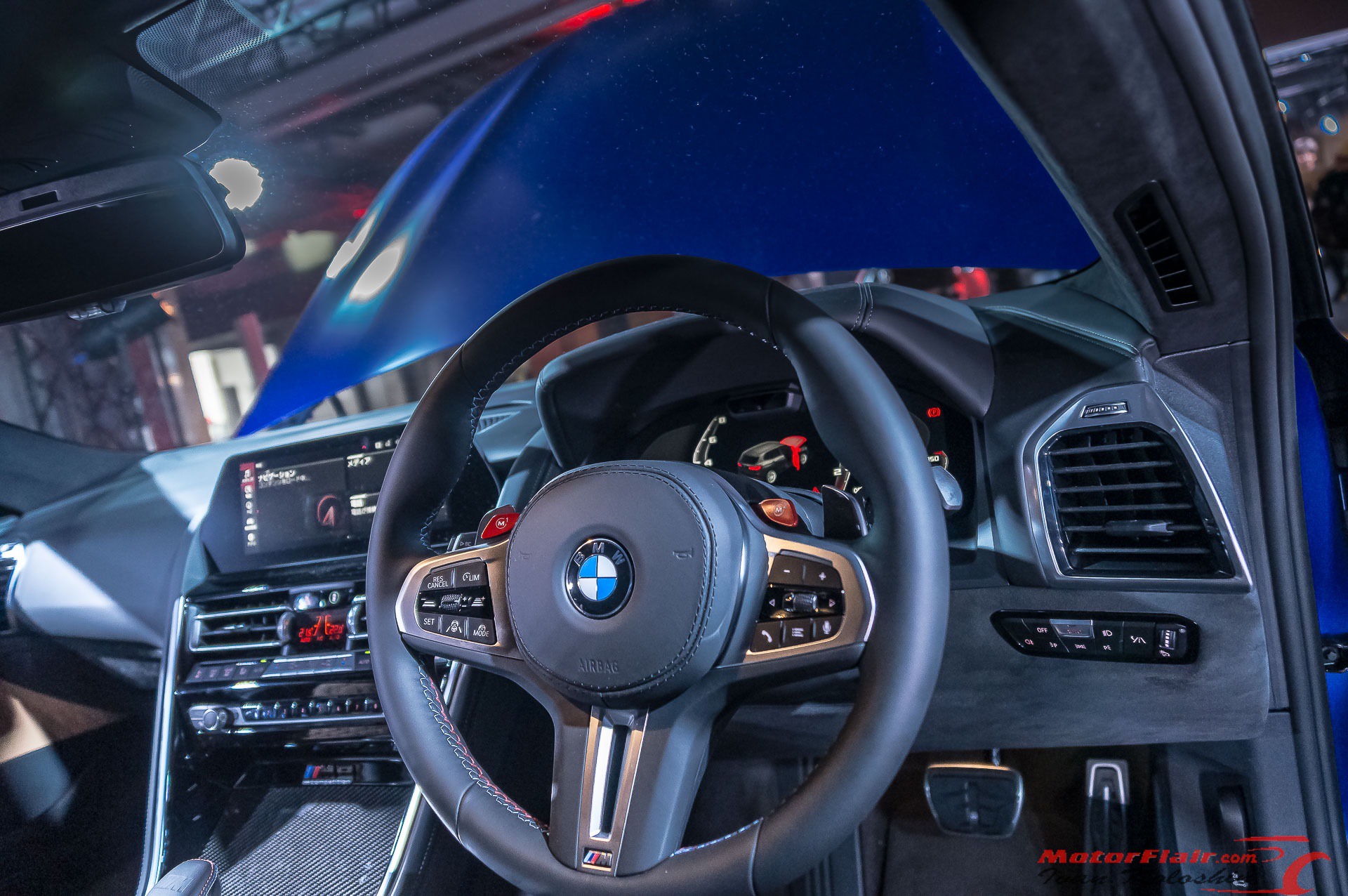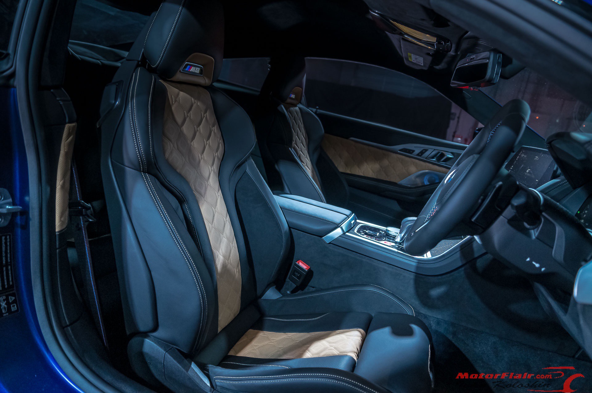 Inside, the BMW M8 gets a few unique updates that separate it from its regular siblings. For starters, it gets new seats, with thicker side bolsters and a new diamond-esque inlay pattern. That same new pattern is present on the door panels as well and looks really quite good with a two-tone color scheme.