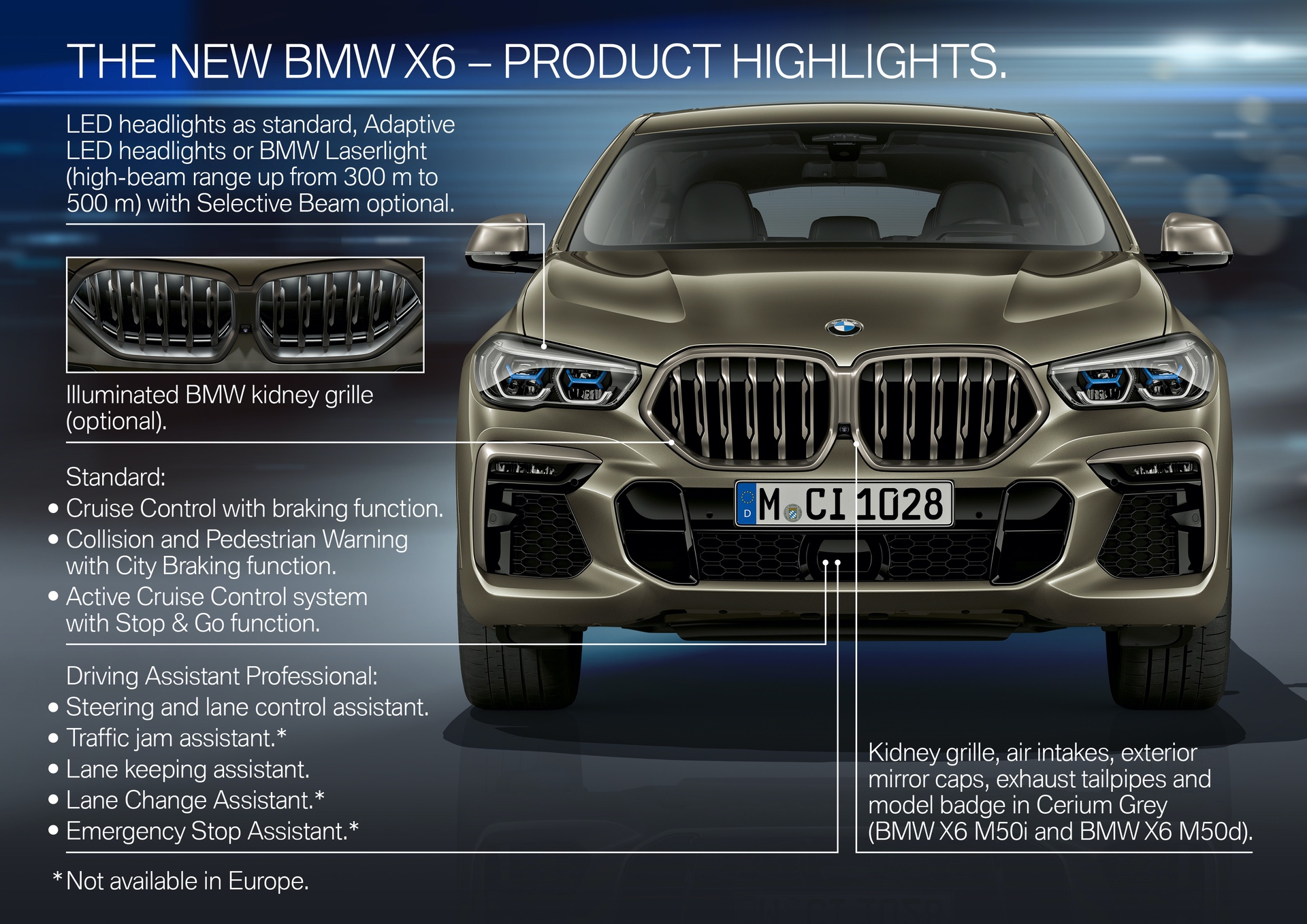 MSRP pricing starts at $64,300 for the new 2020 X6 sDrive40i, $66,600 for the X6 xDrive40i and $85,650 for the X6 M50i. Pricing does not include $995 Destination.