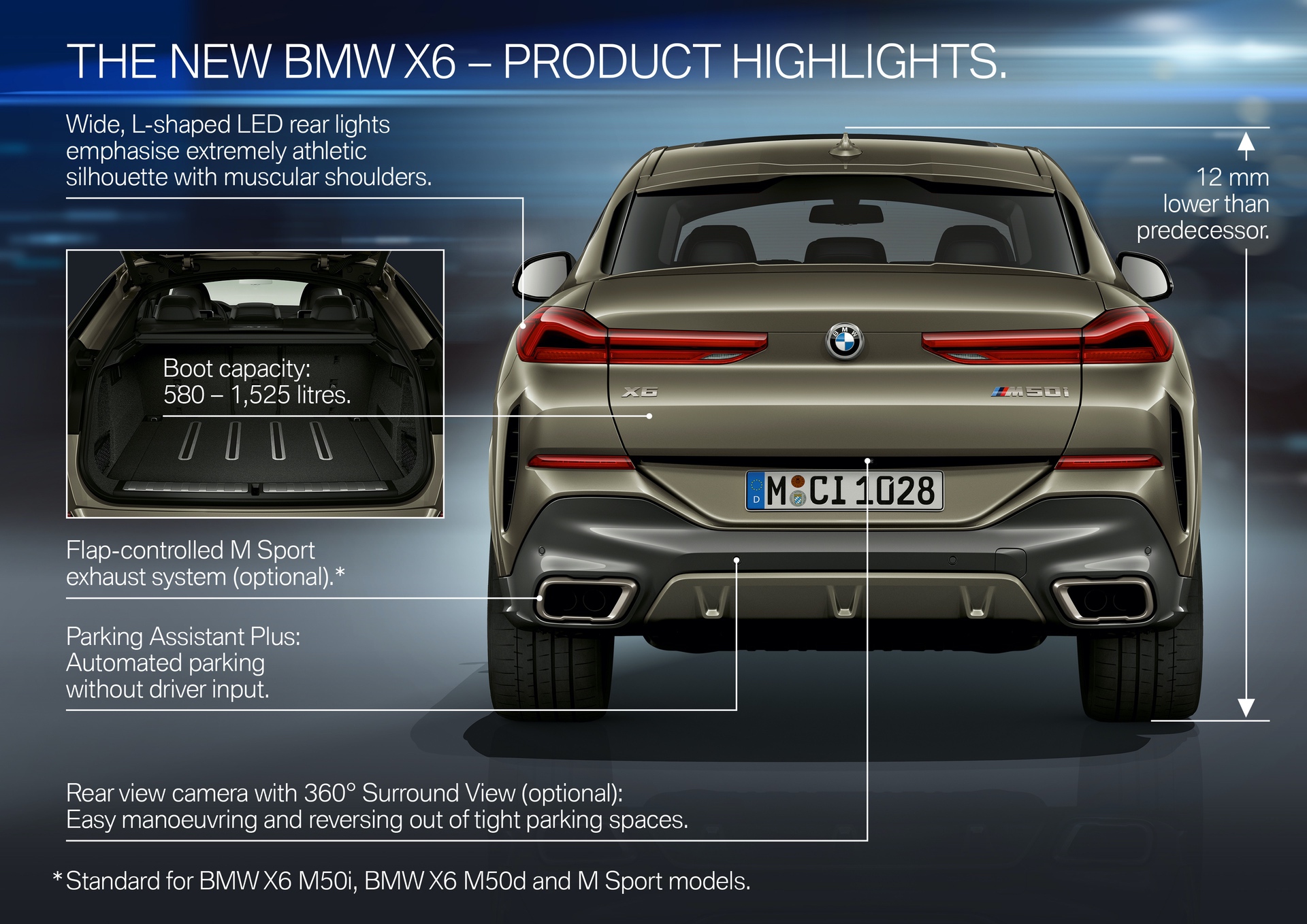 The new BMW X6 will celebrate its world premiere at the IAA Cars 2019 international motor show in Frankfurt am Main. The market launch will follow in November 2019.