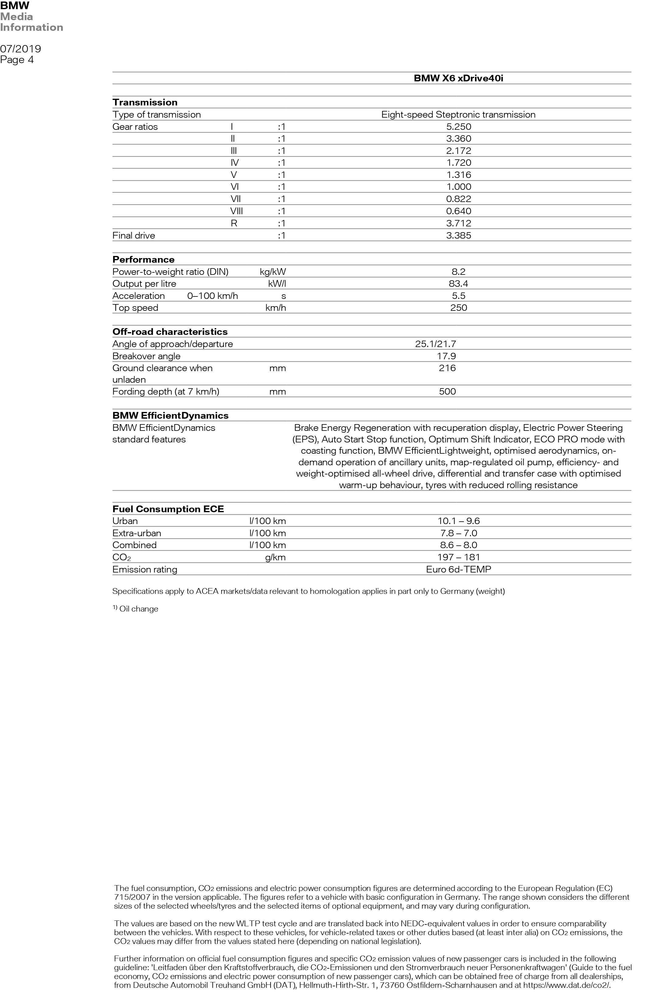 X6 xDrive40i: 340 PS | 450 Nm | 5,5 s | 250 km/h | 8,o-8,6 l/100 km