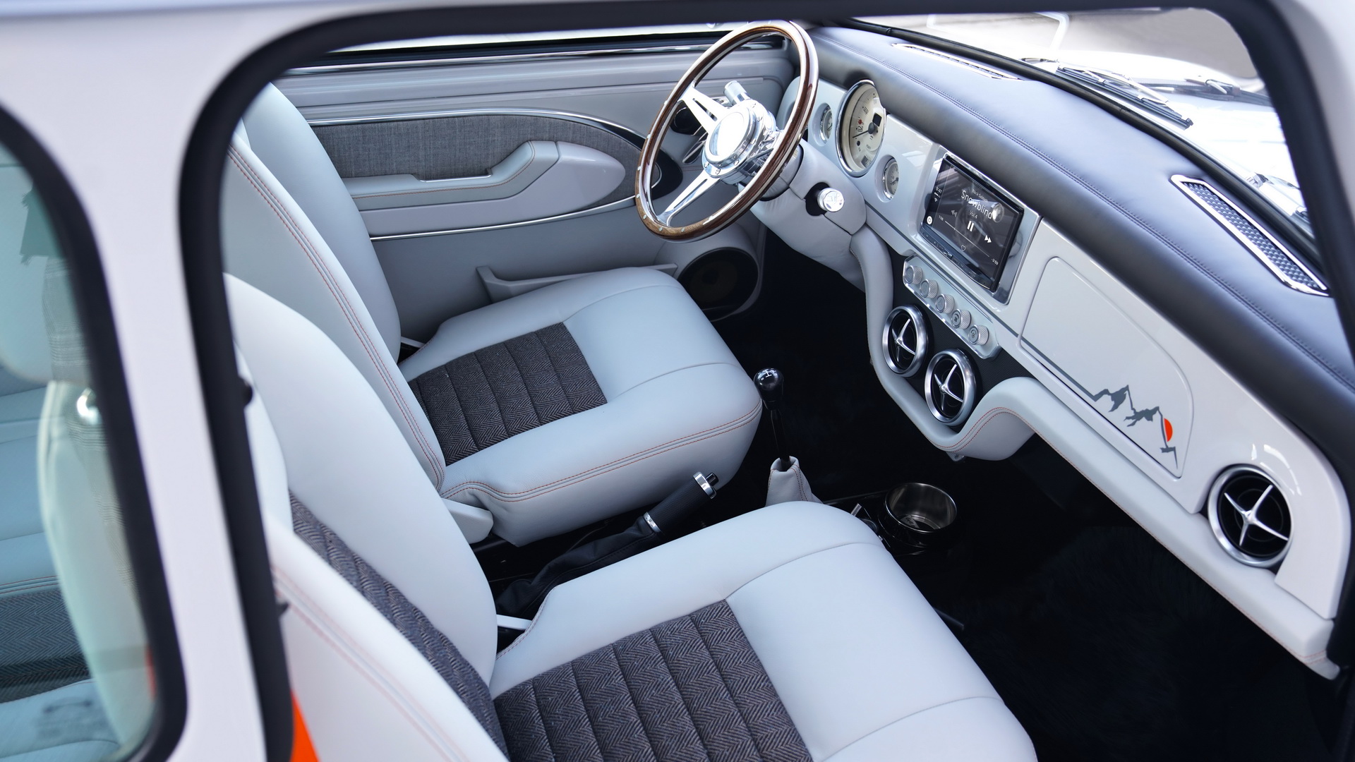 The seats have been changed, the gearshift lever is the same but has a leather pouch around it while the dash has been completely overhauled. Leather dominates the atmosphere now, along with wood and aluminum. The doors have covers now and armrests, the speedometer sits in front of the new, smaller steering wheel and there’s even a display right in between the seats. According to David Brown, each of these cars would take about 1,400 hours of work to be transformed to such an extent but what a beautiful result they yield.