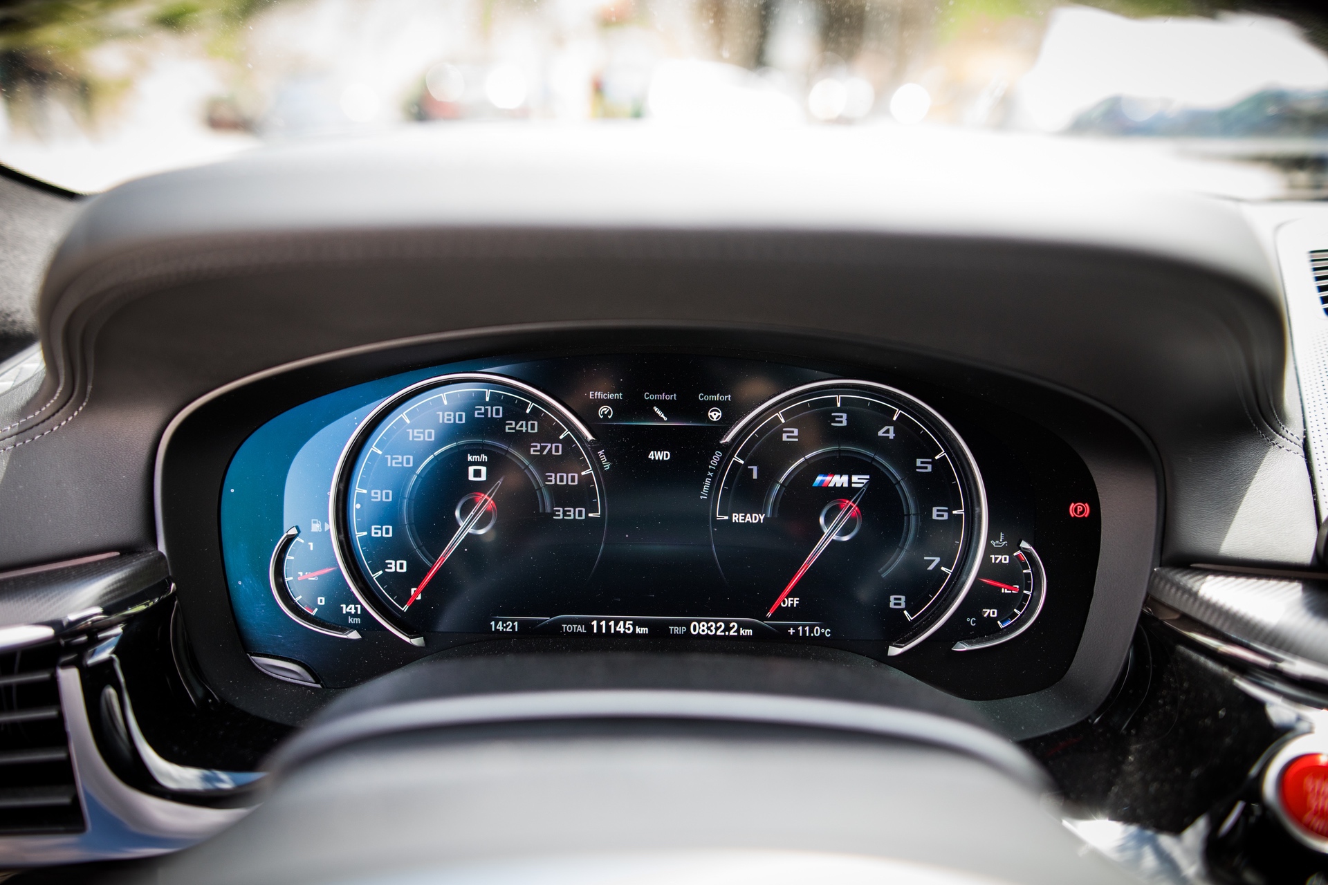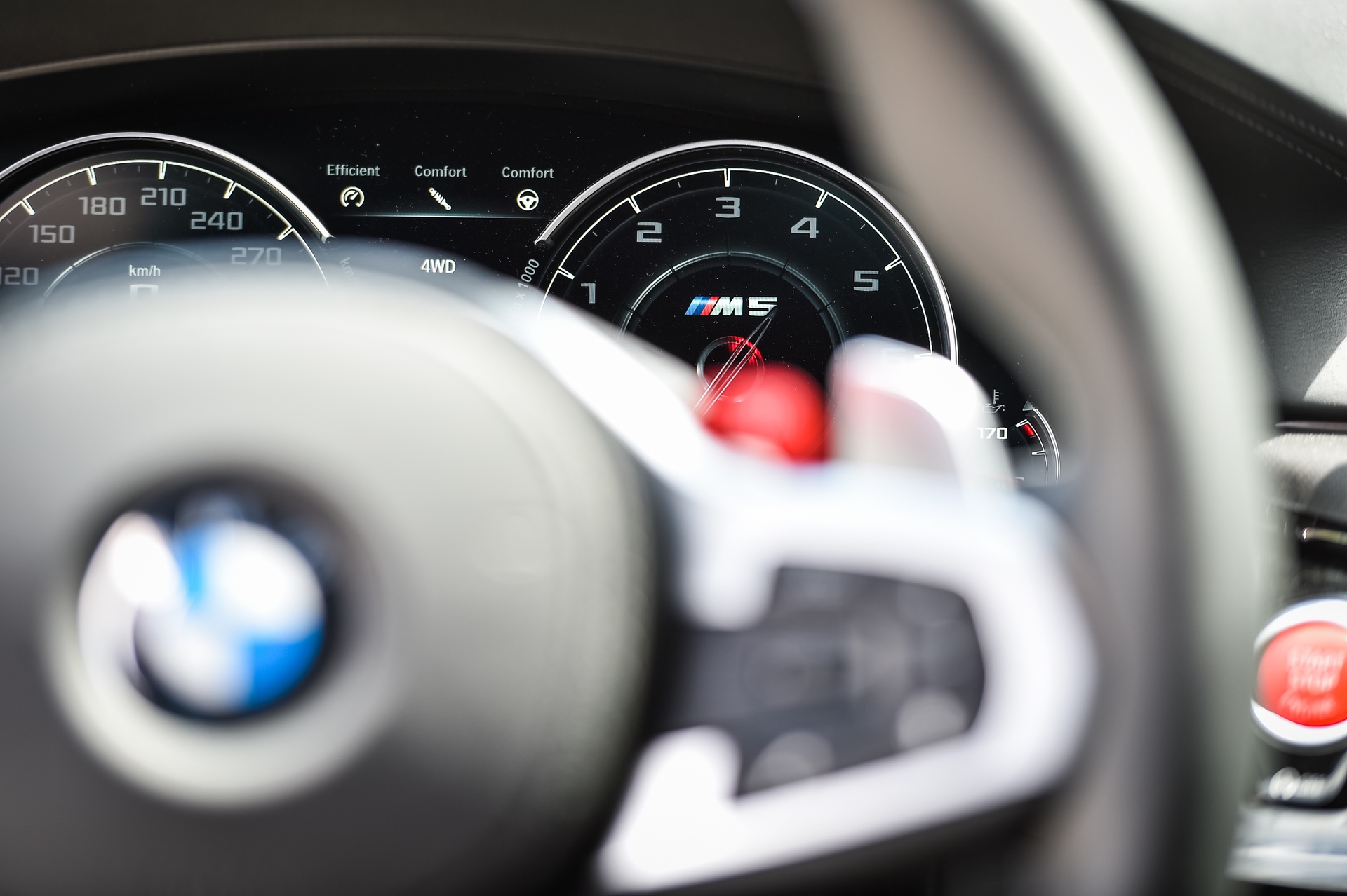 On the M5, things can get a bit complicated at first due to the plethora of different parameters you need to set. Luckily, you have presets you can save now in the form of two buttons on the steering wheel. I had the M1 button set up to the Sport+ settings for the steering, acceleration and transmission, in 4WD Sport mode and with MDM on. The M2 button was the chilled version, with everything in Comfort. This made my life easier but it did take a while to find out the perfect setup.