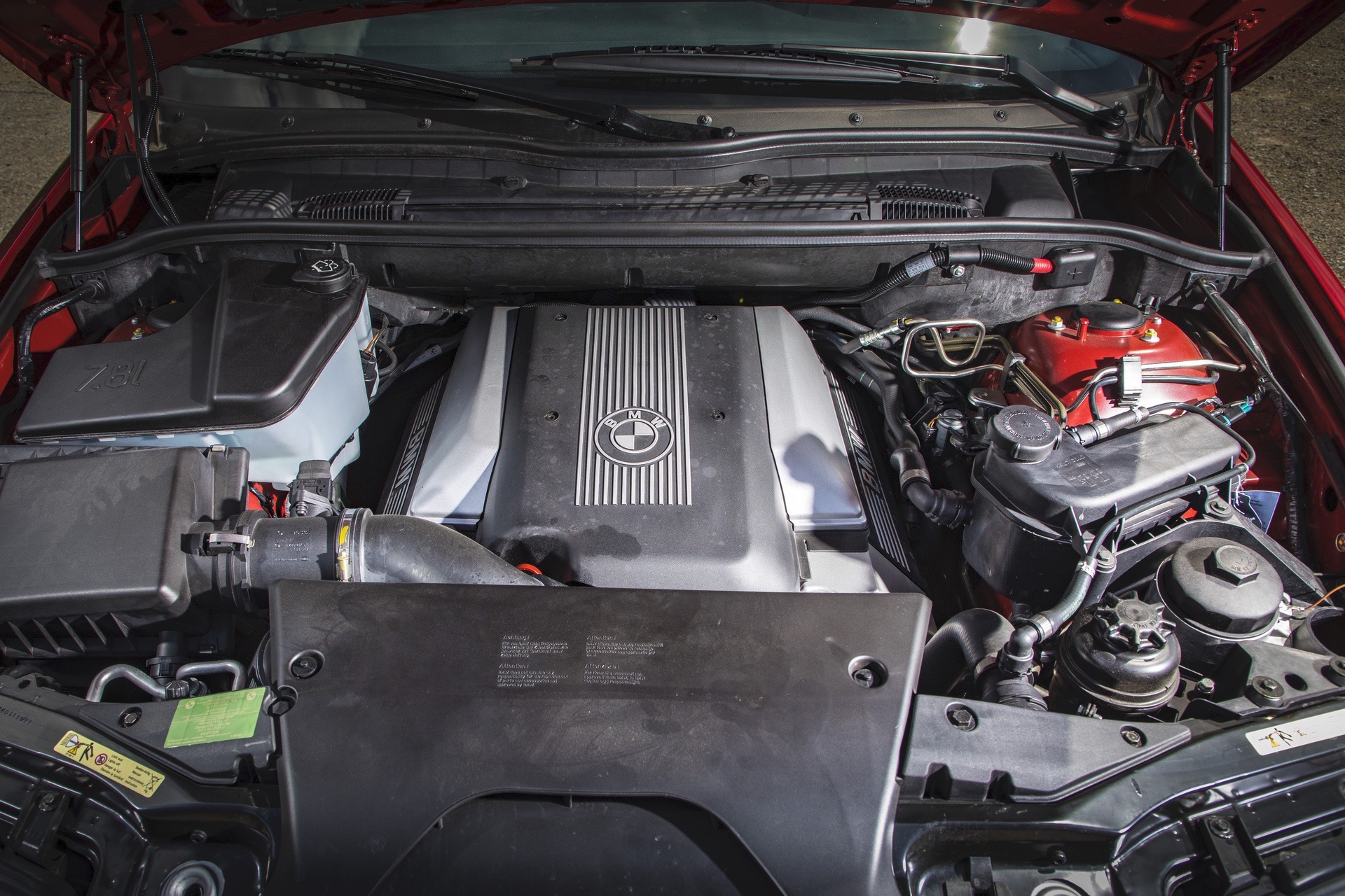 Key to the performance of the X5 4.6is is a bored and stroked version of the 32-valve M62 V-8 from the 4.4i. Now displacing 4619 cc and with a half-point bump in compression (now 10.5:1), the tuned up engine has more aggressive cam timing and ignition mapping of its Bosch Motronic M 7.2 ECU.