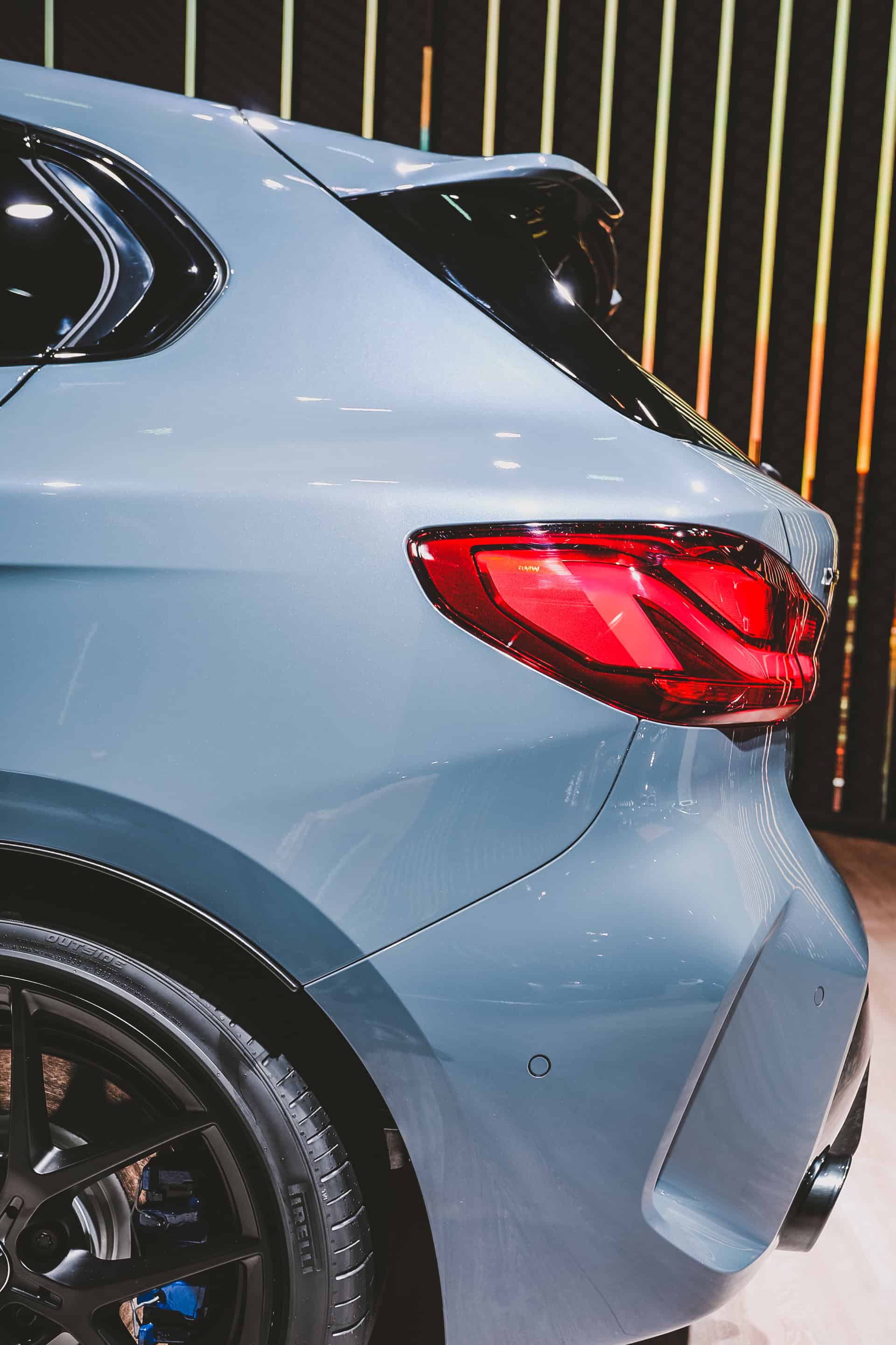 The top model is particularly evident in the design accents in Cerium Gray, which clearly differentiate the M135i from the less motorized 1s with the M Sport package.