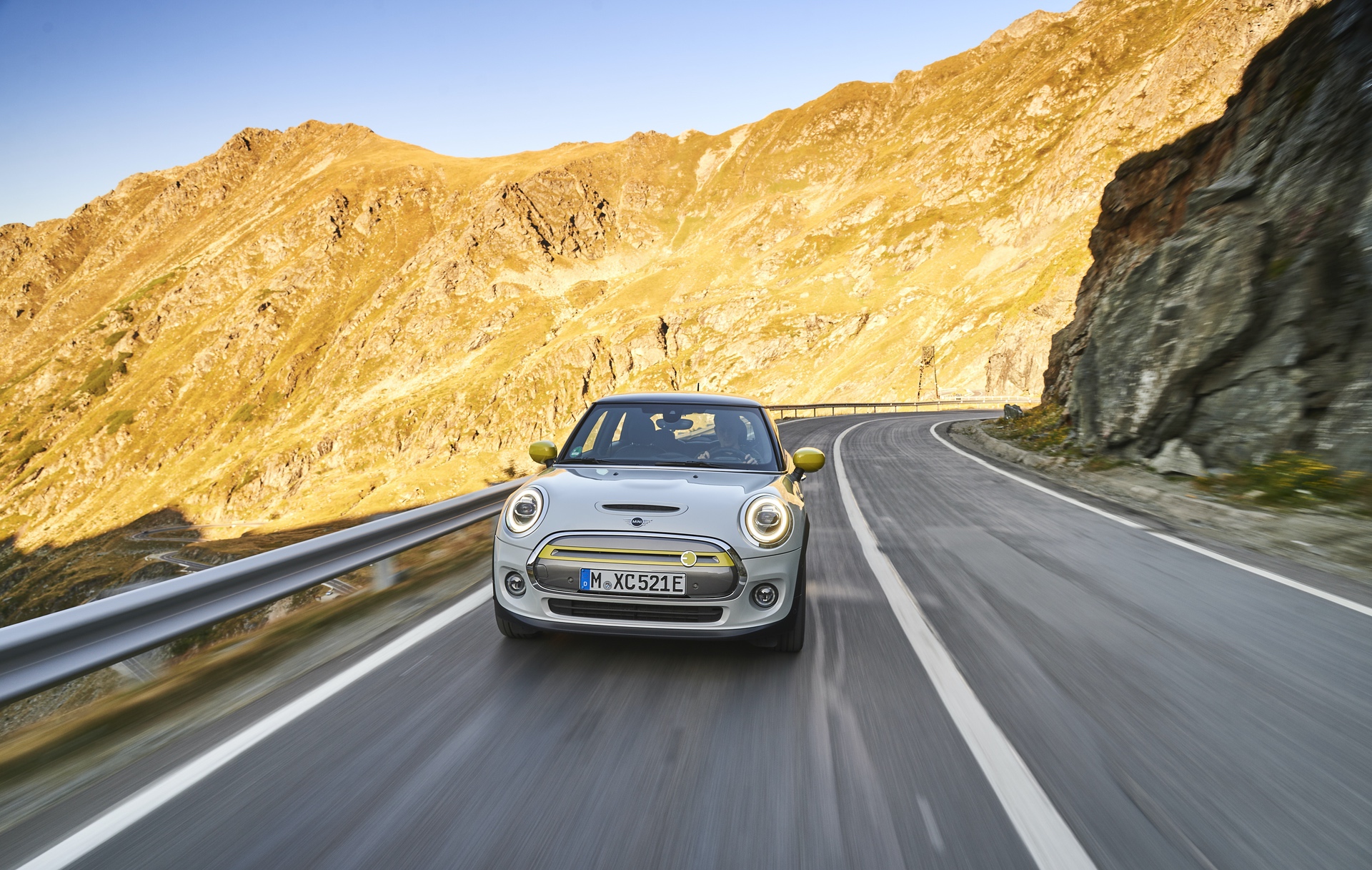 The new MINI Cooper SE is powered by an electric motor providing 135 kW/184 hp directly to the road through the front wheels thanks to the automatic transmission and model-specific torque of 270 Nm. The Transfăgărăşan road unfolds second by second, becoming wilder and ever more dramatic, but that doesn’t stop the electric car and its driver from having fun.