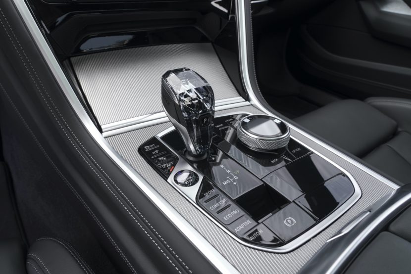 Sitting up front is marvelous, though. There is a lot of space for the driver and passenger, who are wrapped in extremely comfortable and sporty seats. Essentially, it’s the same front cabin from the 8 Series Coupe and Convertible, so you’re getting the new dashboard design with intuitive controls. Of course, the car was fitted with the upscale glass gear shifter and the iDrive knob covered in the same crystals.