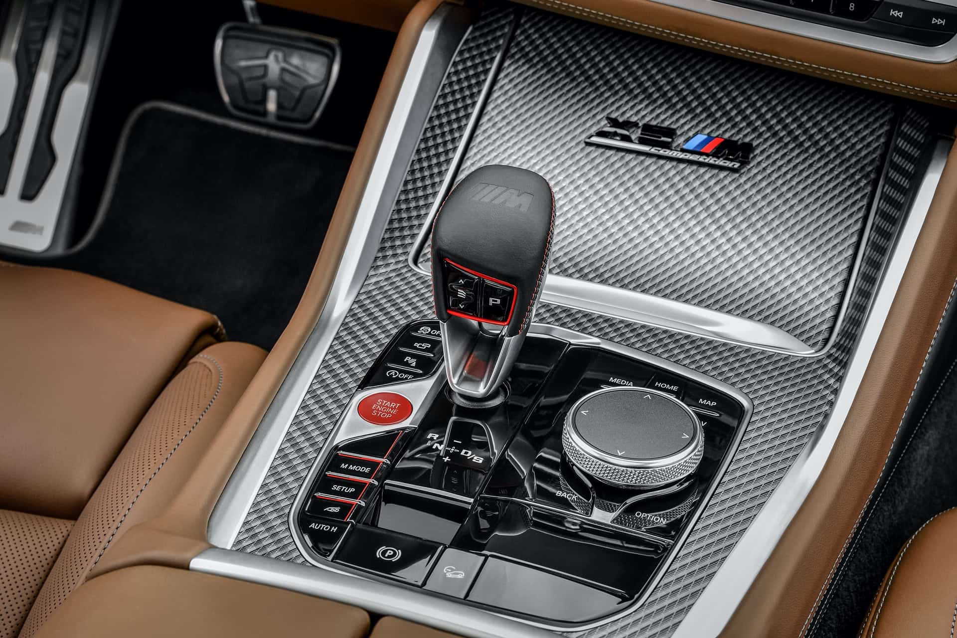 On the inside, it looks very much like a standard car, just with some M Division bits thrown in. For instance, the BMW X5 M gets seats that look like they’ve been pulled straight from an M5. That’s a welcome addition, as the M5’s thrones are superb. It also gets the same new M-style shift lever that’s found in the BMW M8, which is much nicer than the plastic Transformer-Leg shift lever of cars like the M5 and X3 M. Of course, there’s some carbon fiber trim and an M steering wheel with two red “M1” and “M2” buttons.