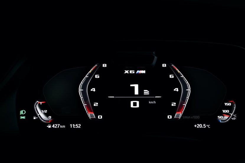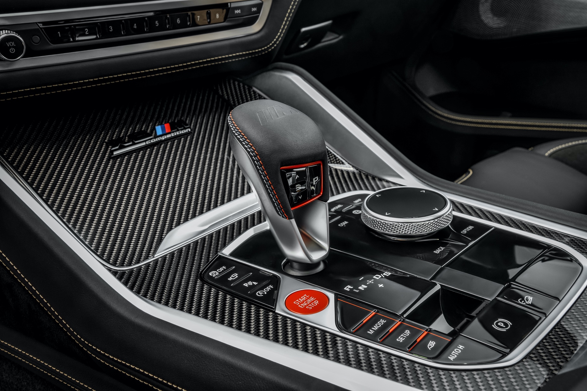 In addition to the sportier looking seats, the BMW X6 M gets a new shift lever, the same one from the BMW M8, and it looks significantly better than the plastic-trimmed robot leg of the X3 M. Carbon fiber trim is of course an option, because M car, and a new M-specific sport display is featured in the digital instruments. So there are a few updates that make it feel a bit more special than the standard car.