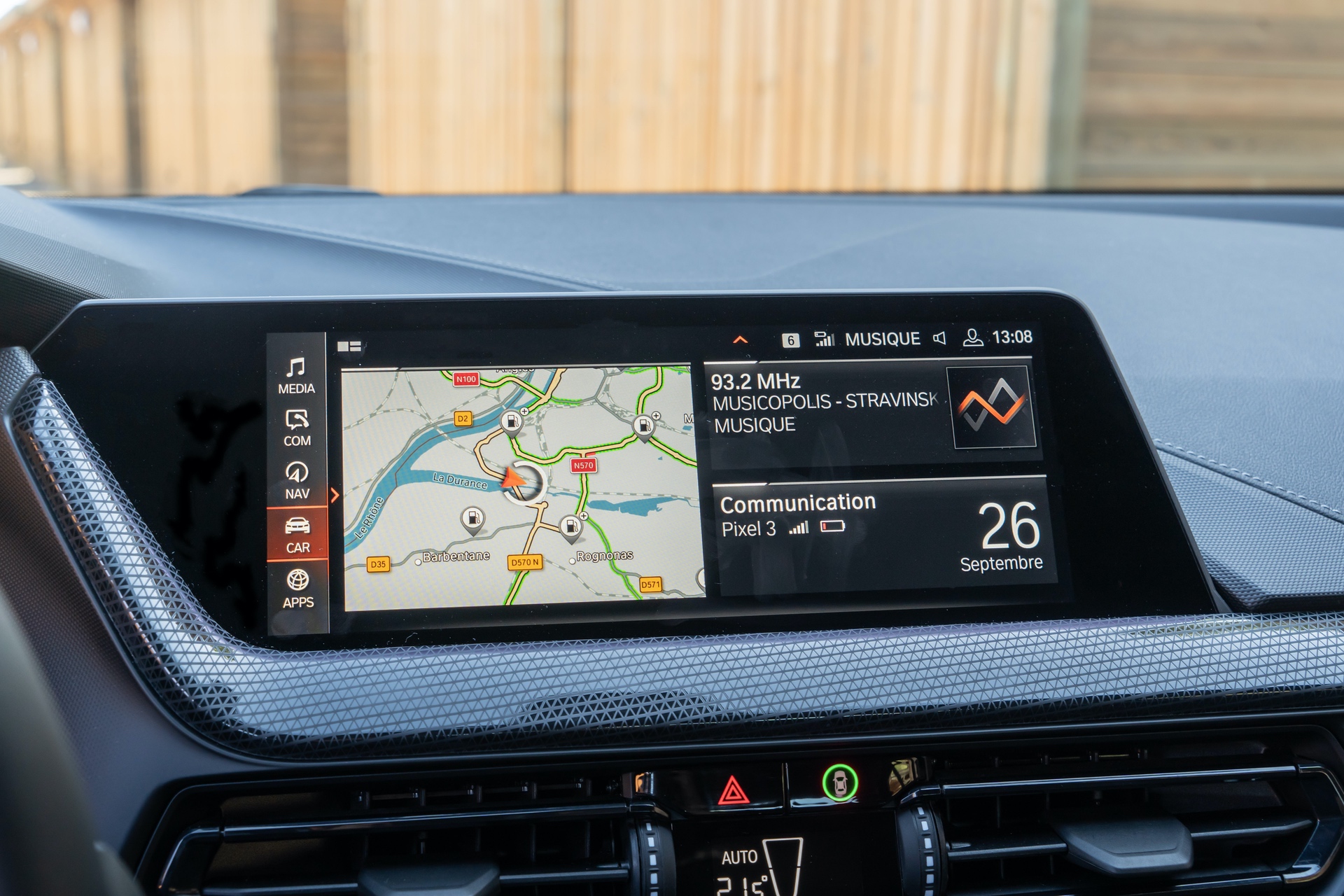 In these photos, we see the Melbourne Red BMW 1 Series with the BMW Live Cockpit Professional and two 10.25 inch displays. Also installed is the Parking Assistant package with reversing assistant.