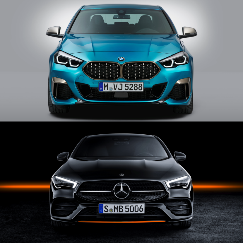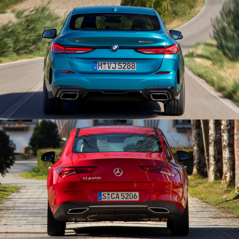 It is rather hard to decide between the two, but BMW somehow manages to be the eye-catcher in this game as well. Deeply rooted in its tradition, the Mercedes simply looks rather bland and uninspiring, while also being correct in styling and not overly styled. Too much of a bar of soap. Looking at the 2 Series Gran Coupe signals a fresher attitude, more presence and understated elegance, mixed with some precisely dosed inspiration from some its mighty ancestors: the 6 Series Gran Coupe, the 4 Series Gran Coupe and the 8 Series Gran Coupe.