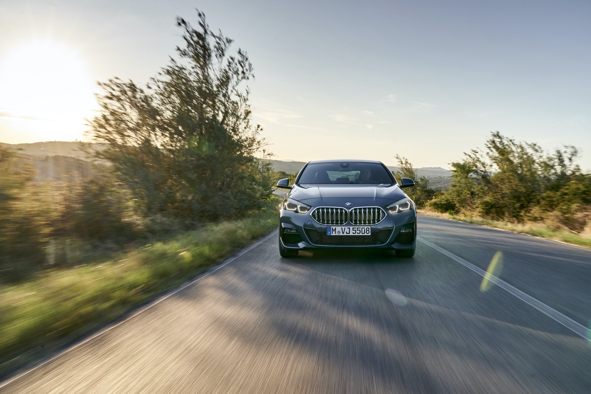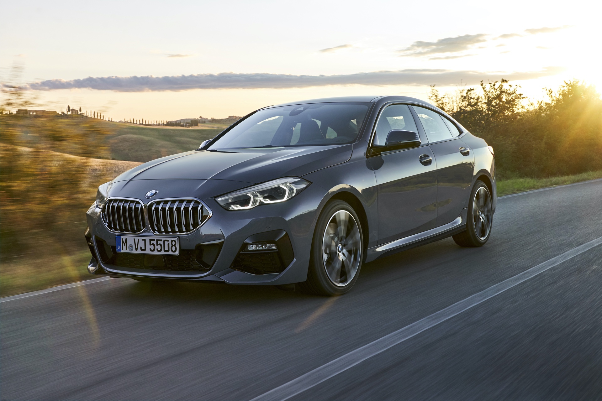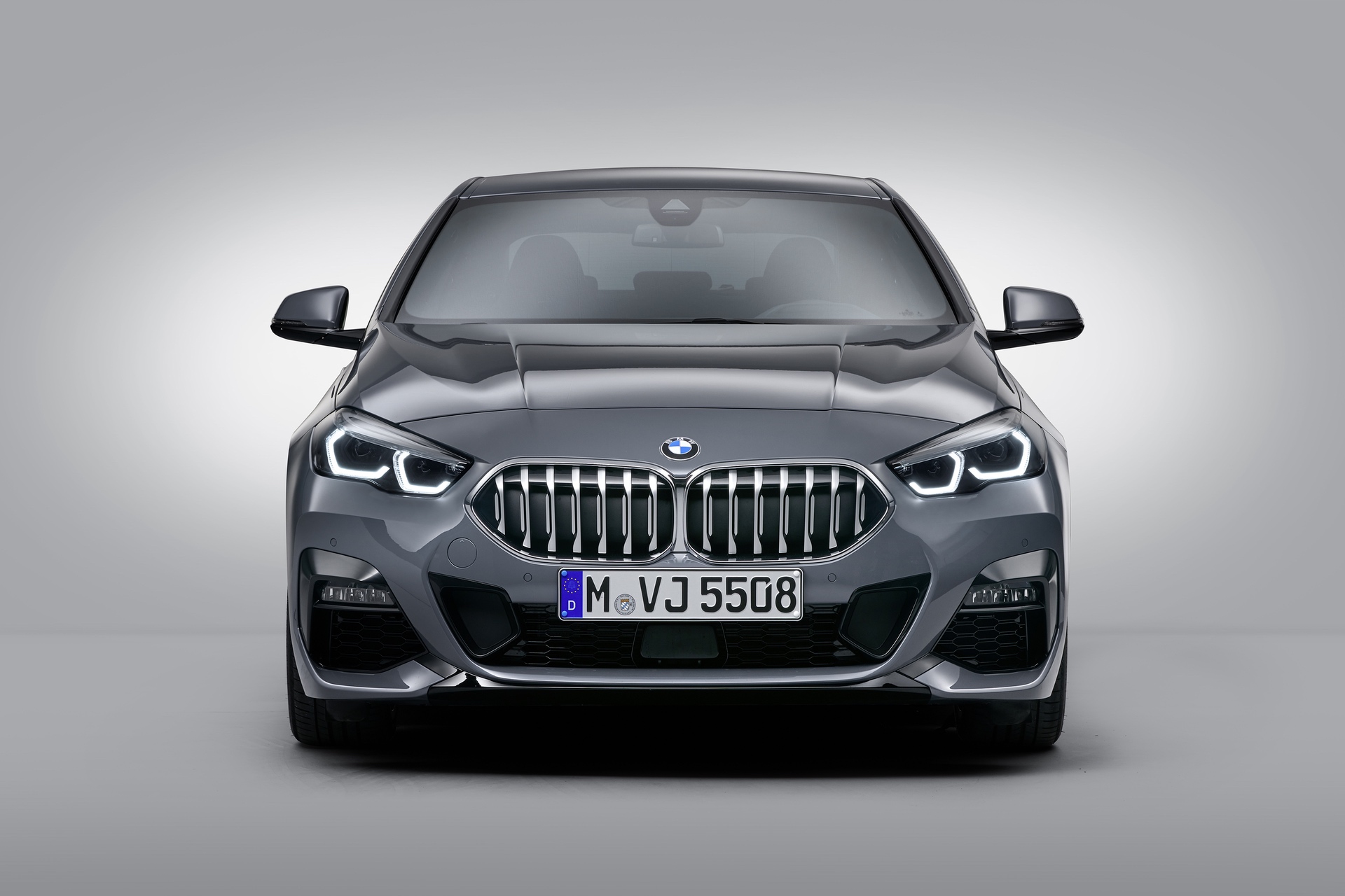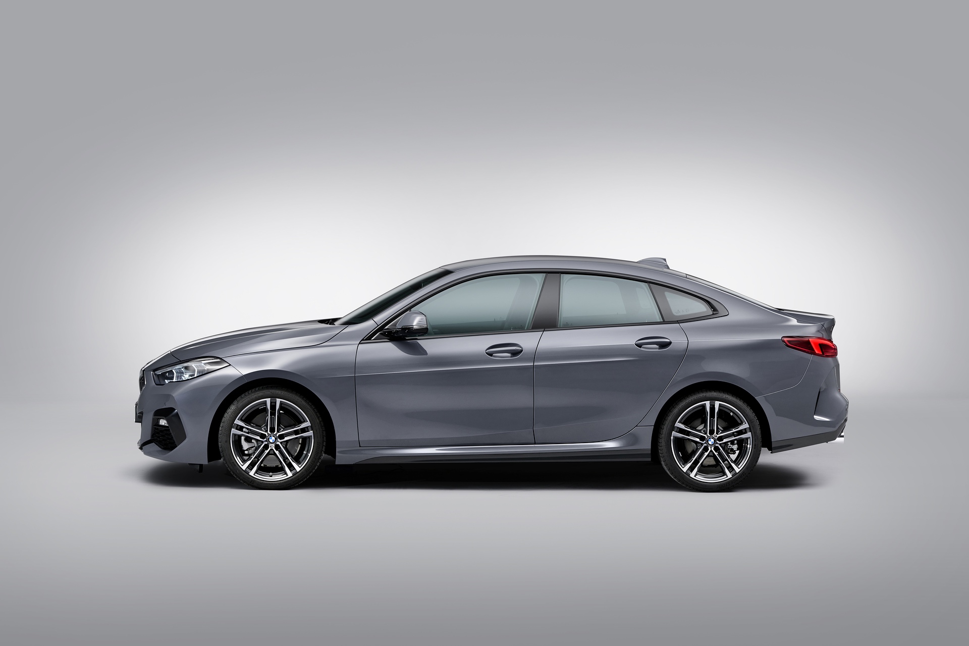 Seen here in M235i-spec, the 2 Series Gran Coupe looks very aggressive. It gets massive front air intakes and little vertical vents next to them. It also gets the typical M Performance brushed aluminum-look mirror caps and the new Kidney Grille insert pattern.