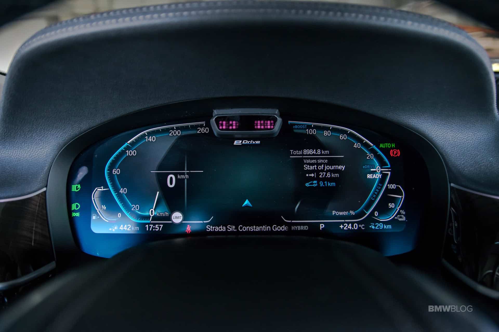 If your daily commute is roughly 20 miles, you should be able to travel emissions-free every day, provided you can charge the car at home or at work. Furthermore, the new 745e will allow you to drive on electrons on highways too as it can use the battery charge alone at speeds up to 110 km/h (68 mph) now in Hybrid mode. A bit faster than the old 740e. Get the car in Electric mode and you can go as fast as 140 km/h (87 mph) using solely the electric motor.