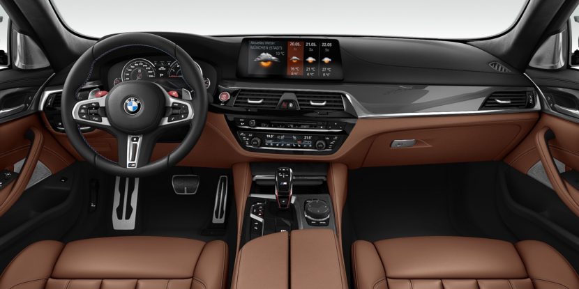 Going inside, the cabin is dressed in a full leather BMW Individual Merino Tartufo upholstery, which decisively rounds off the spectacular configuration of this BMW M5 Competition.