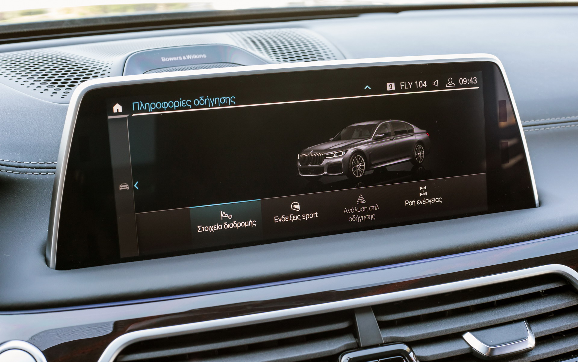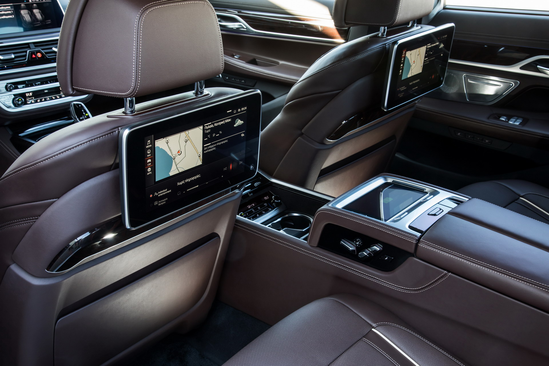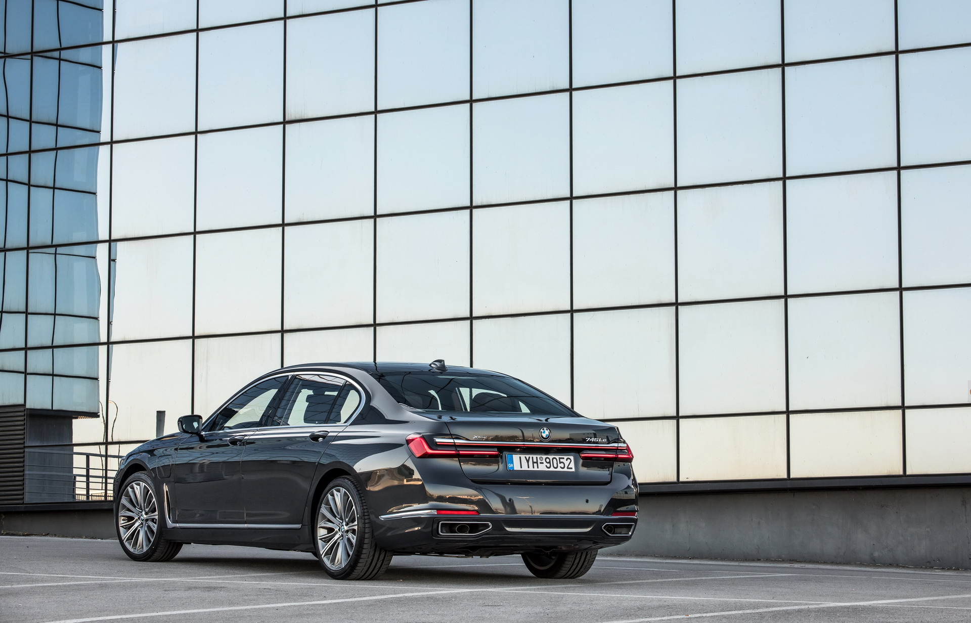 The impressive BMW 745Le xDrive that was the star of the Greek national media launch was specced in a deep shade: Sophisto Grey metallic. The Exterior Design Pure Excellence package was also ticked from the options’ list, as well as the 20-inch V-style code 628 bicolor alloy wheels.