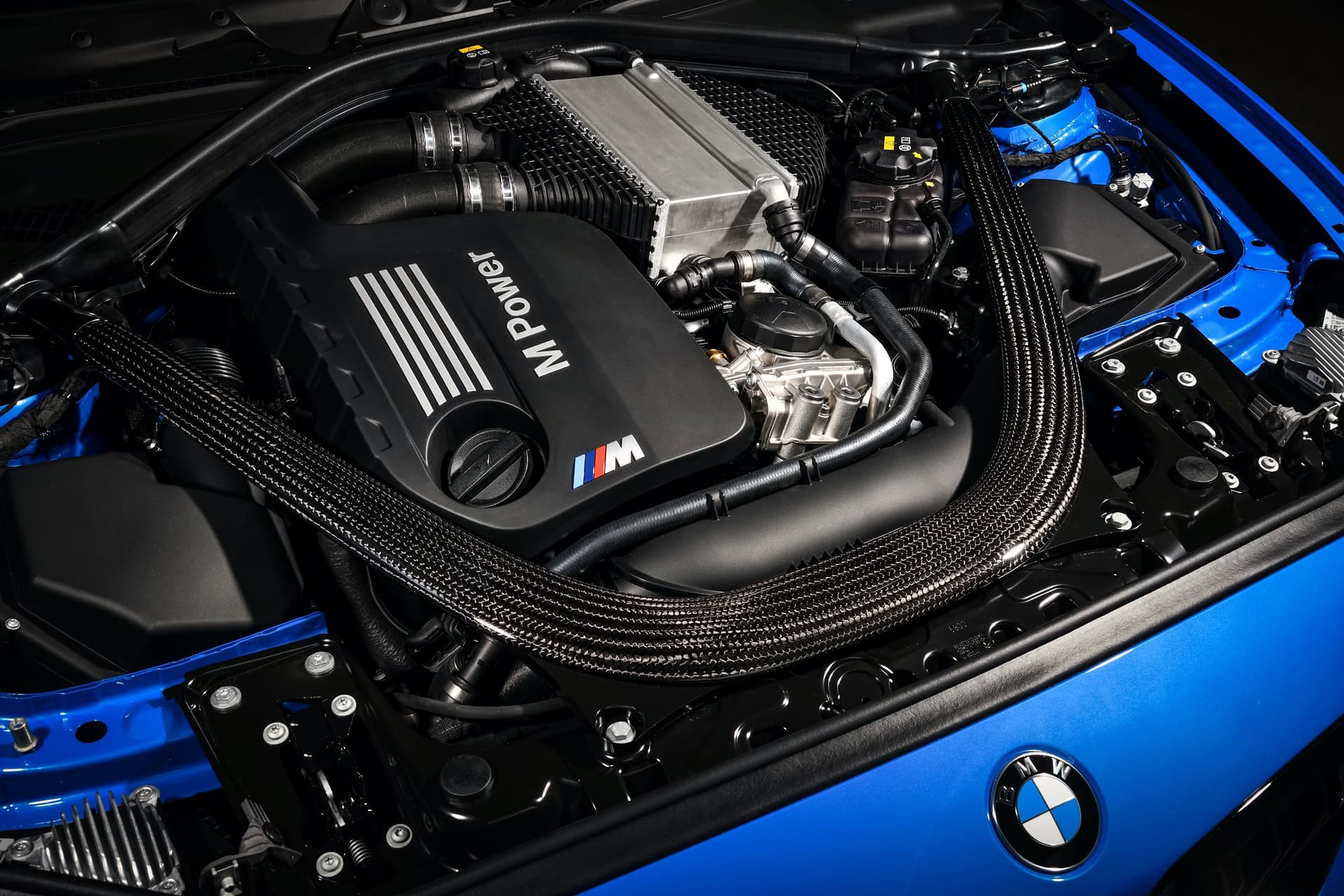 When equipped with the DCT, there is also a transmission oil cooler. Three radiators, an oil cooler, two pumps in the oil pan, and an oil sump baffle are some of the mechanical upgrades of the M2 CS.