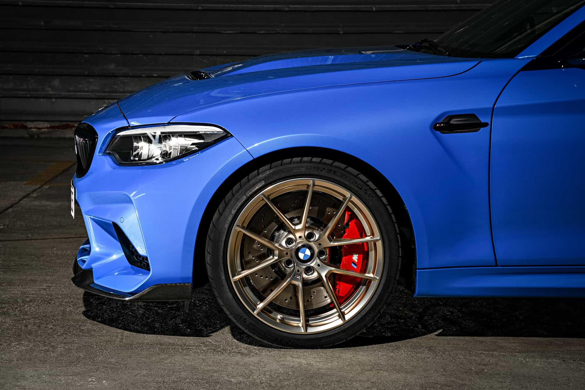 The as-standard M Sport brakes aren’t carbon ceramics but they’re bigger than the standard M2 Competition’s, at 400mm up front (15.75-inch) and 380mm (14.96-inch ) out back. Calipers are six-piston up front and four-piston out back. What’s interesting is that the calipers on the BMW M2 CS are painted red, which is unusual for modern Bimmers, which get blue calipers as-standard with gold calipers indicating carbon ceramic brakes. Speaking of carbon ceramics, they’re available as an option on the M2 CS.