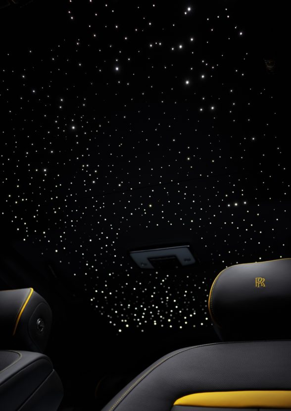 Starlight Headliner has joined Rolls-Royce iconography alongside the Spirit of Ecstasy and Pantheon Grille and makes its Cullinan debut on Black Badge Cullinan. Crafted in Black leather with 1344 individual fiber optic cables, the new Bespoke Starlight Headliner incorporates a new shooting star feature with eight brilliant white shooting stars.