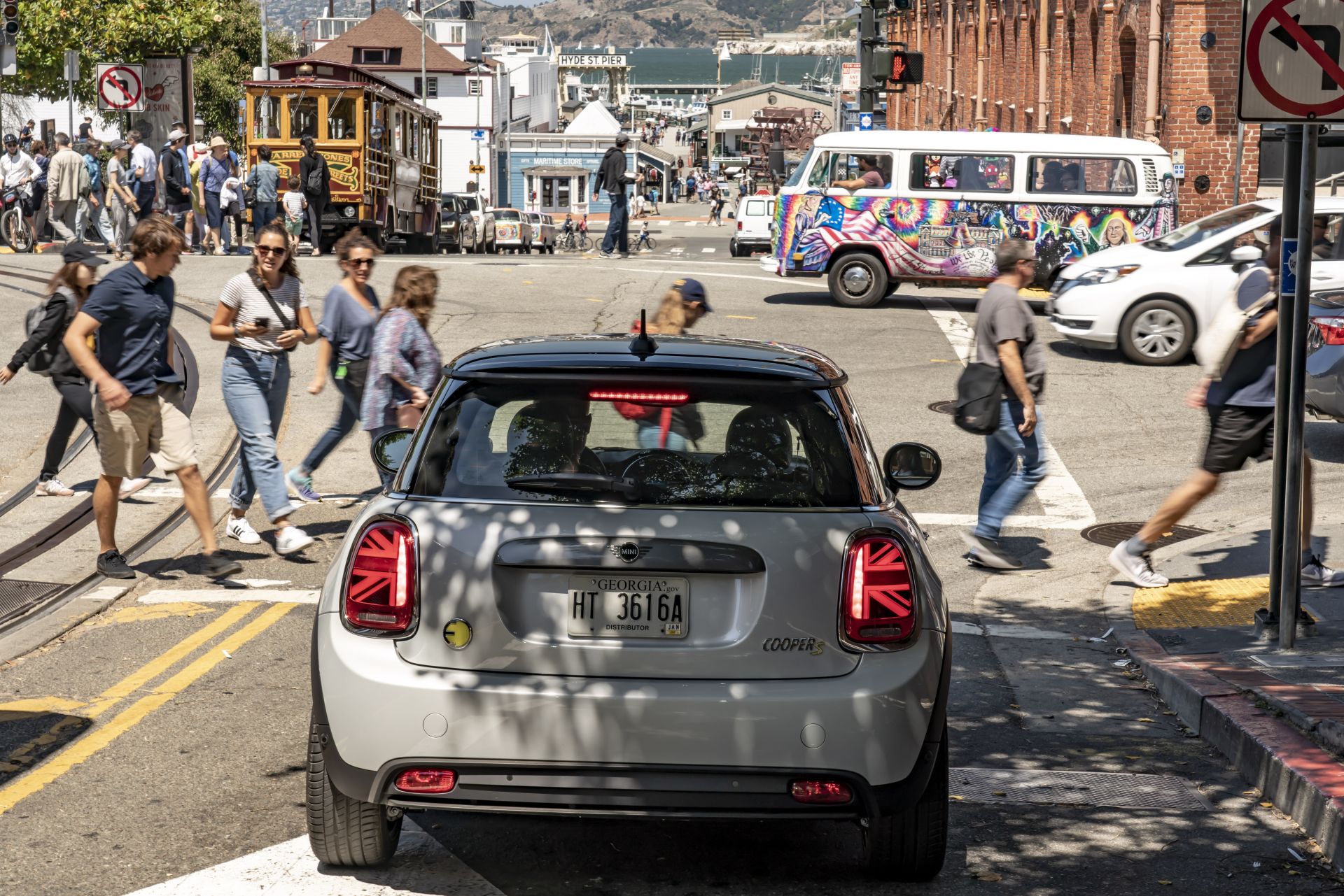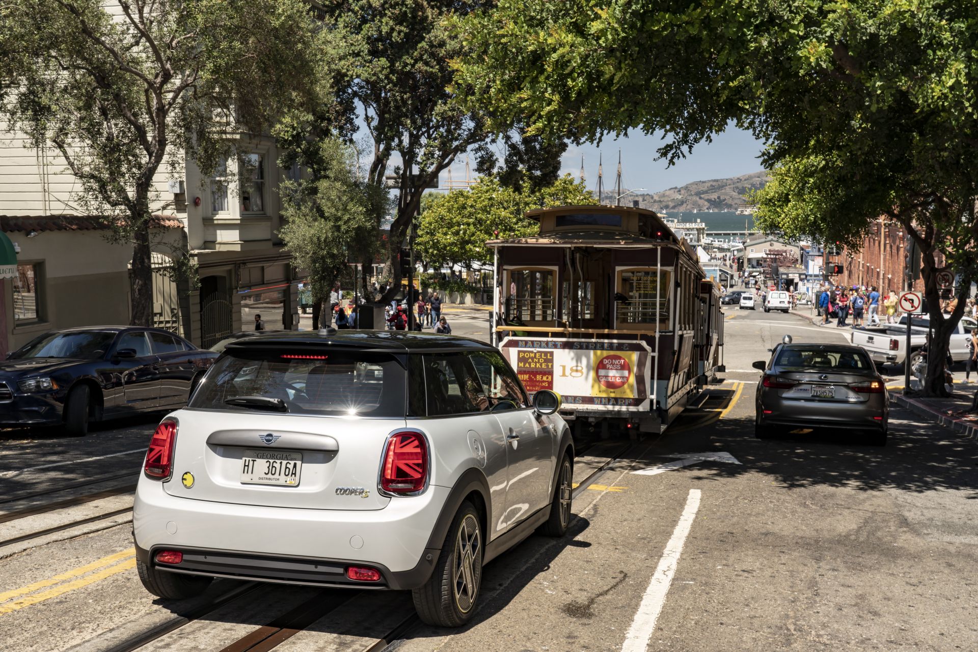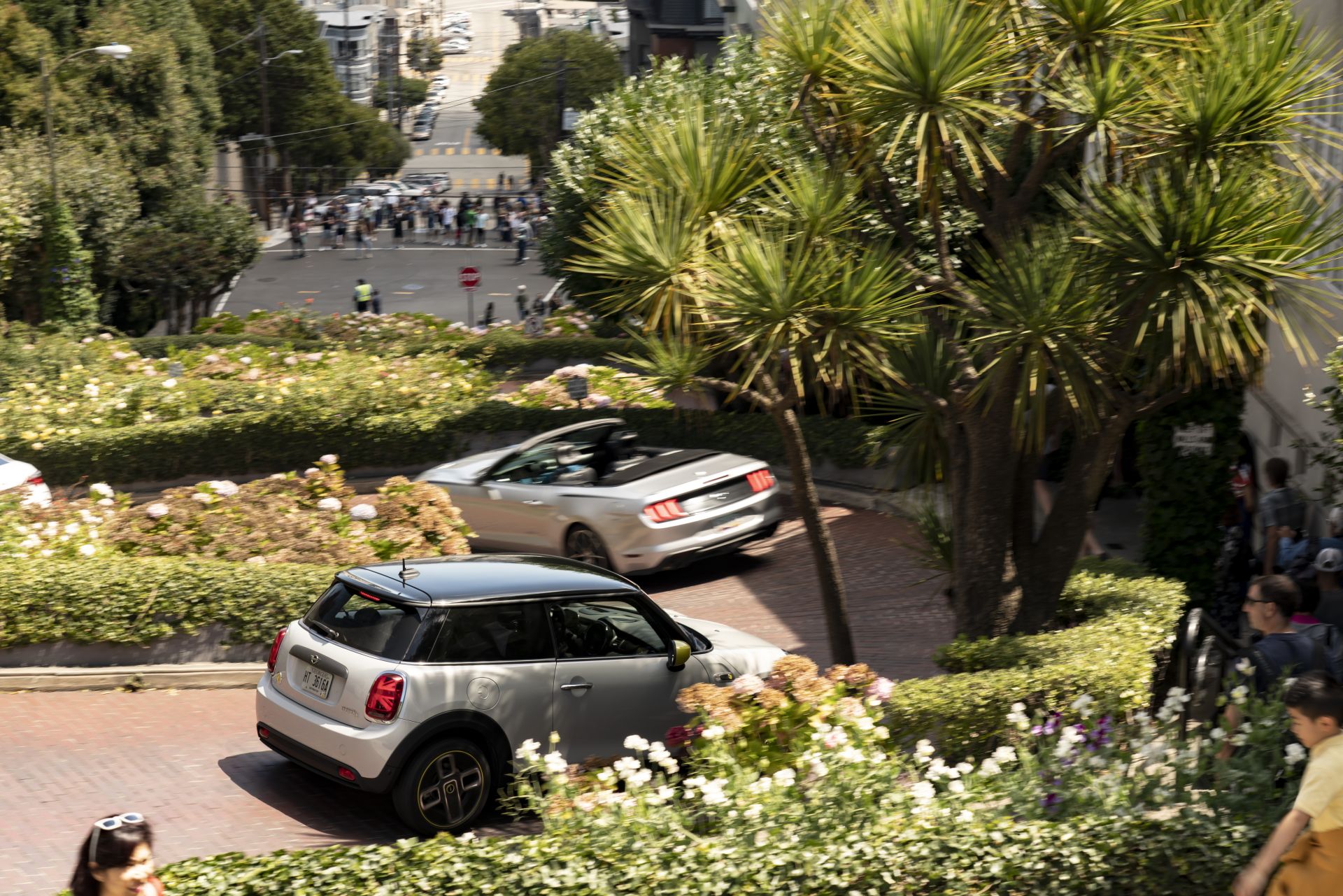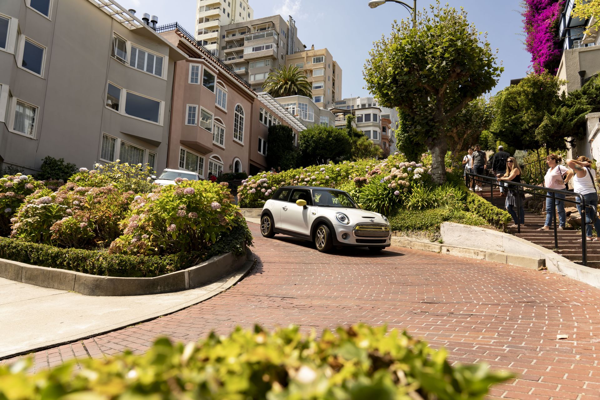 The trip also aimed at proving the car is usable daily, without any restrictions compared to the ICE version. The loading capacity is the same as on the MINI Hardtop 2-door, ranging from 211 to 731 liters. Furthermore, the battery charge should offer up to 270 km of electric range. The first stop was Lombard Street, easily the most crooked road in the world with its eight sharp hairpins. The steep one way downhill single lane street has an inclination of 27 percent and a recommended speed of only 5 miles per hour (8 km/h).