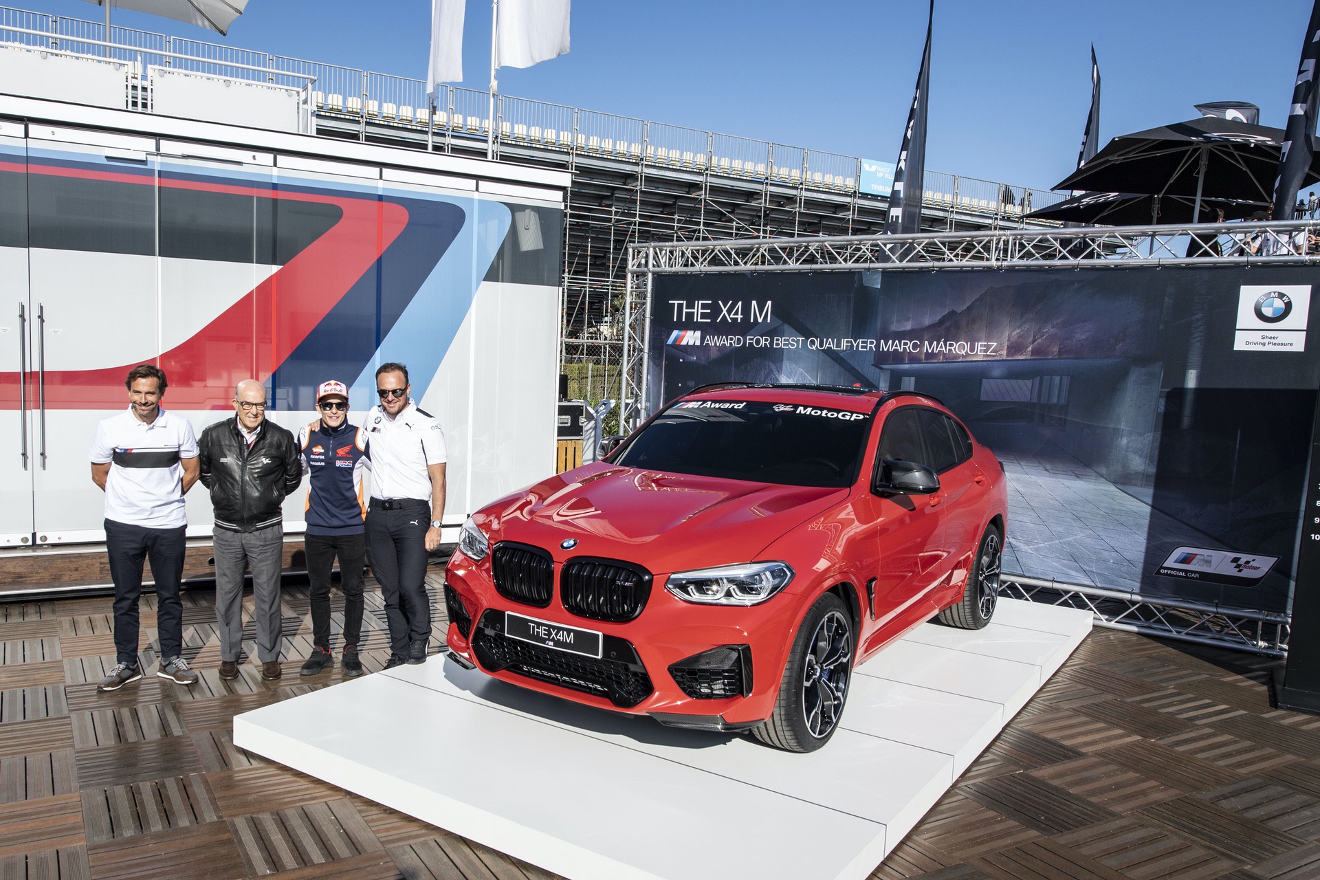 Therefore, the M brand awarded the Spaniard a BMW X4 M Competition painted in Toronto Red. It was presented to Márquez in Valencia by Carmelo Ezpeleta, CEO of MotoGP commercial rights holder Dorna Sports, Markus Flasch, CEO of BMW M GmbH, and Manuel Terroba, CEO of BMW Group Spain and Portugal.