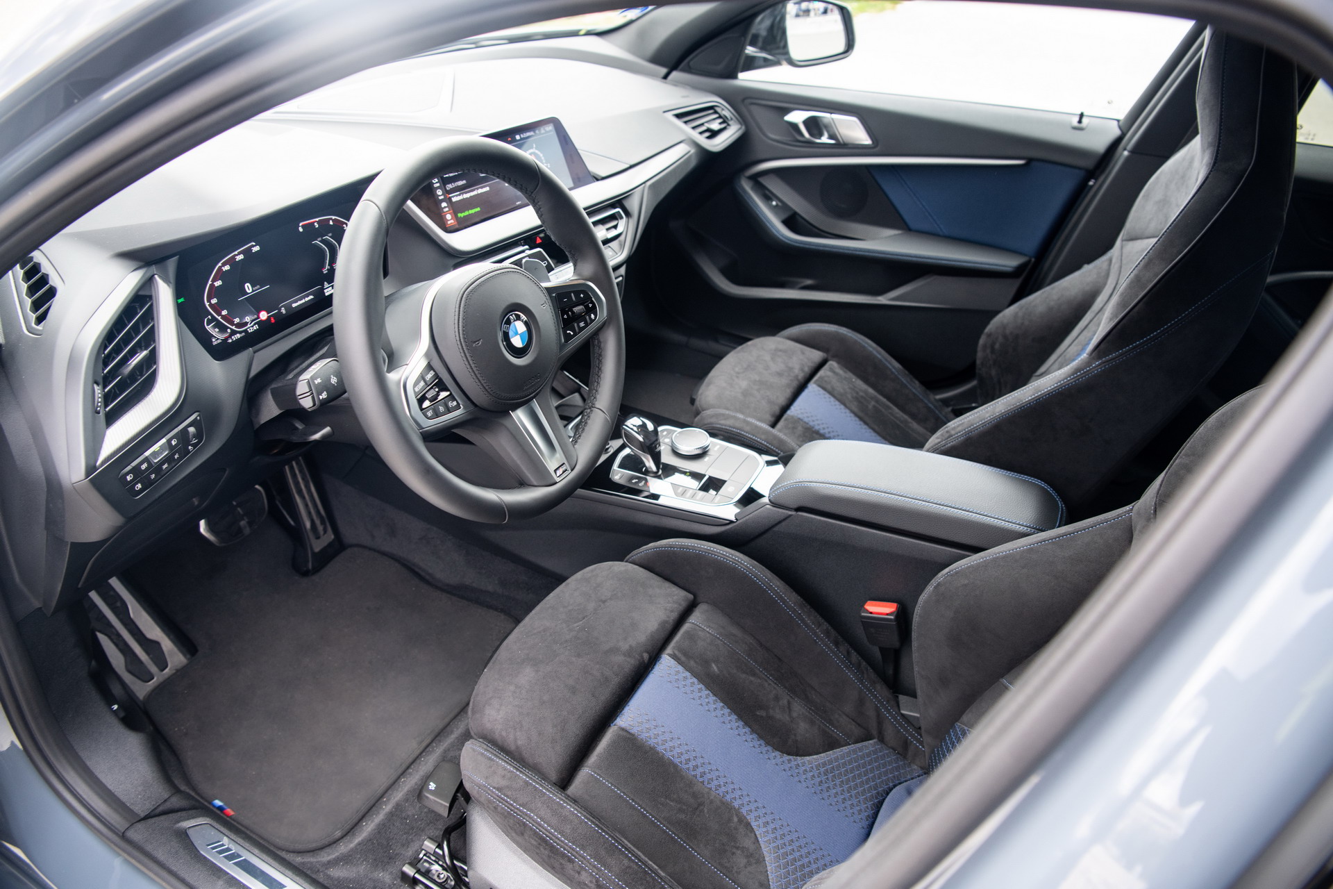 Inside, the 120d xDrive M Sport displays a dual Trigon cloth/Alcantara Black leather upholstery and the two M sports seats at the front. The car is also equipped with the BMW Live Cockpit Professional digital infotainment system.