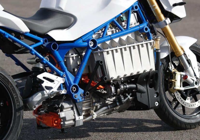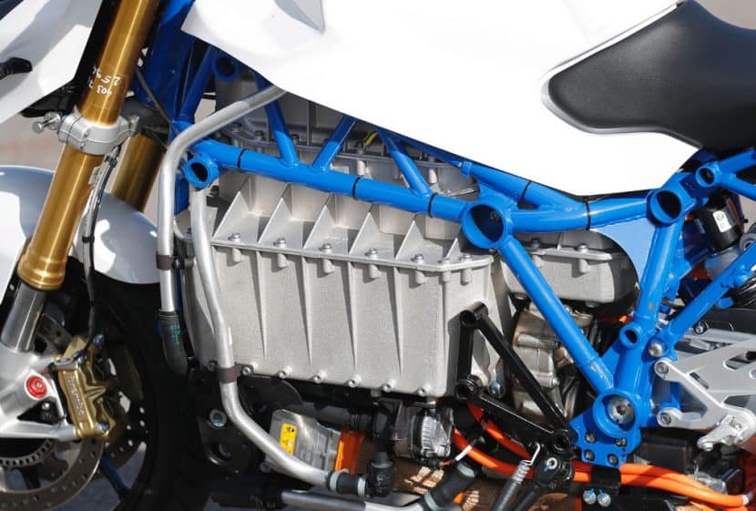 BMW’s e-bike features DC fast-charging and for now, it takes an hour to fill the 13kWh battery. According to MotorcycleNews, the limit to this is heat (once the battery gets above 40°C charging slows right down) and BMW are working on an improved cooling system to get around this. The goal for production is to achieve 3.7 miles of charge per minute, so a 30-minute stop would put 111 miles riding range.