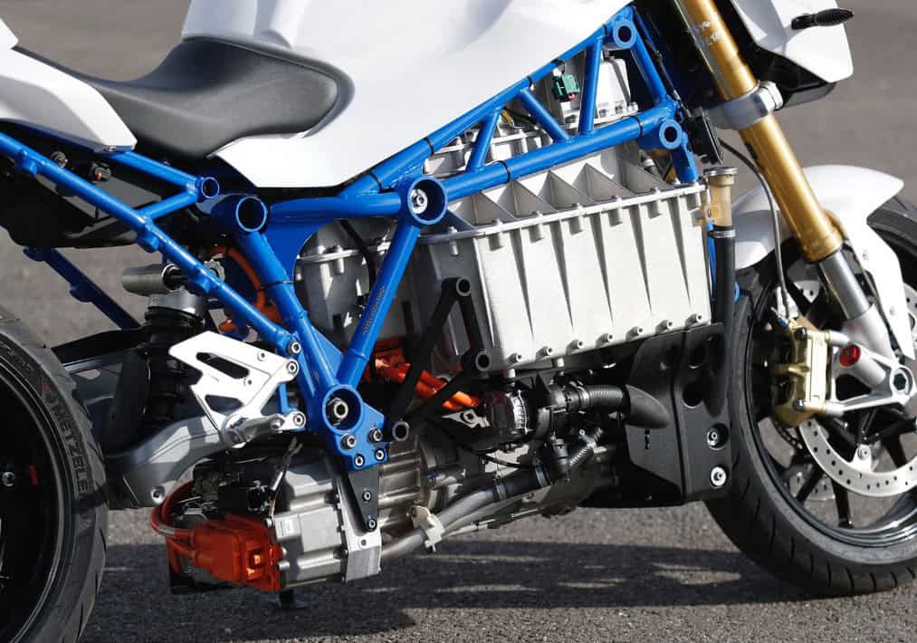 This allows the E-Power to produce 136 horsepower and 147 lb-ft of torque. However, once it’s gone through the single-speed step-down gearbox, BMW say it has an effective torque of 1106 ft-lb. Contrarily to most electric motorcycles that use a belt or a chain final drive, the BMW E-Power Roadster sends power to the back wheel via a shaft.