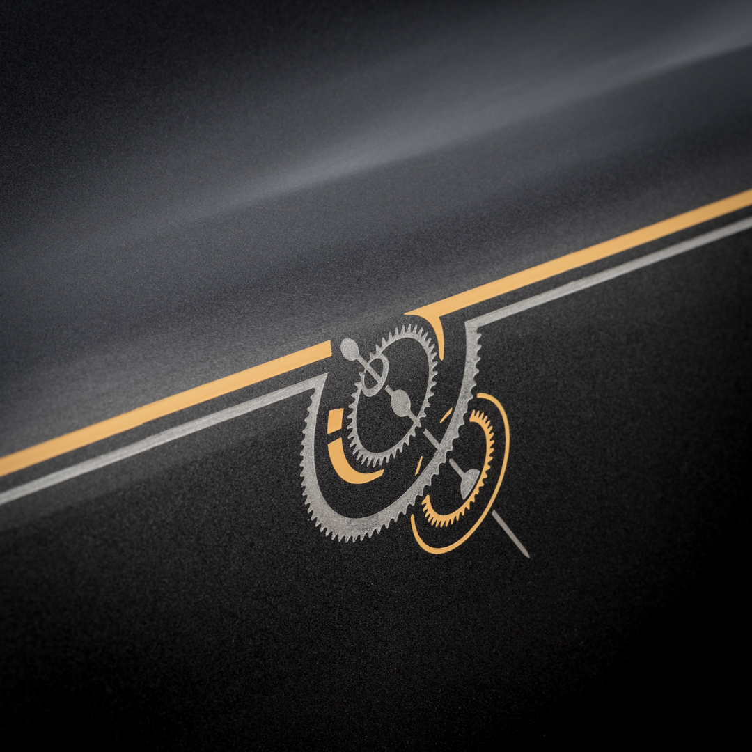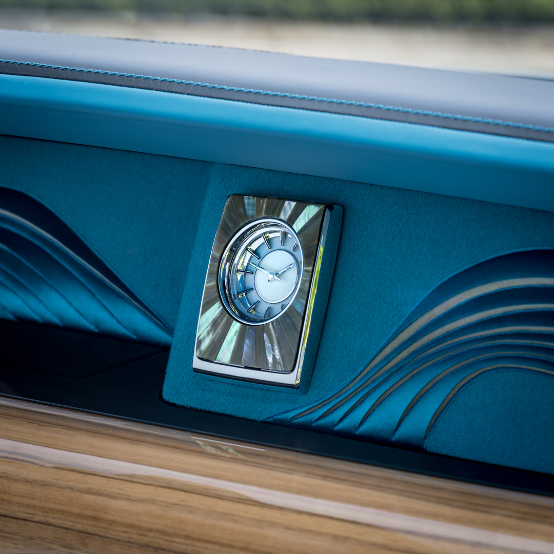 Anyone that owns a Rolls likely also has a fine collection of watches. Or a extremely gaudy one but let’s assume the former. The “Horology” (study of time-keeping and art of watch-crafting) Phantom was designed after a meeting of a Rolls designer and master watchmakers in La Chaux-de-Fonds in Switzerland, the watch-making capital of the world. It features a lot of gold inside, as well as a depiction of a watch movement in the glass art gallery. The Rolls clock is also in a solid silver guilloché case.