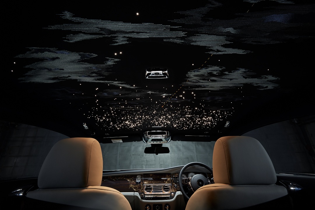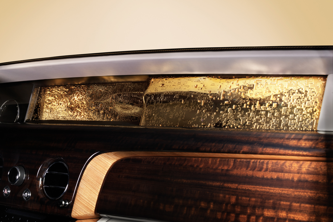 An entrepreneur from Stockholm wanted a Rolls-Royce Phantom that enveloped his passengers in flowers. The result of that vision was the “Rose Phantom”, a Phantom which featured one-million embroidered stitches inside the cabin. A stunning rose motif was created from those million stitches, with the star flower of the cabin being the special rose that was bred for Rolls specifically by Harkness Roses. That very rose is actually the same sort featured in the garden at Rolls’ home in Goodwood. The famous Starlight headliner illuminates the roses and a rose motif is featured in the glass “Gallery” dashboard design. It’s a stunning car that really shows off the level of craftsmanship the Rolls-Royce Bespoke team is capable of.