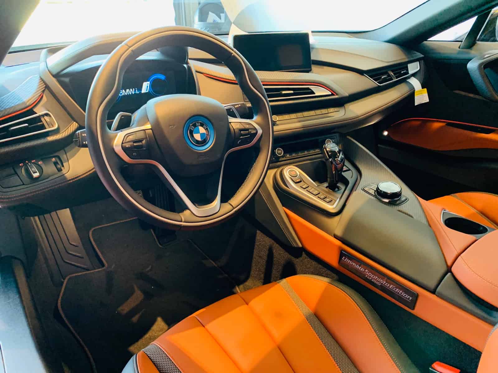 The i8 Ultimate Sophisto Edition Coupe pictured at a US-based BMW dealer has a final MSRP of $151,495, which includes the $995 destination charge tax and the Ultimate Sophisto Edition package worth of just $3,000. The equipment list also includes the Comfort Access system, carbon fiber dashboard trims, electrically-adjustable heated seats, Active Driving Assistant, Apple CarPlay integration, real-time traffic information and Bluetooth/Smartphone enhanced connectivity.
