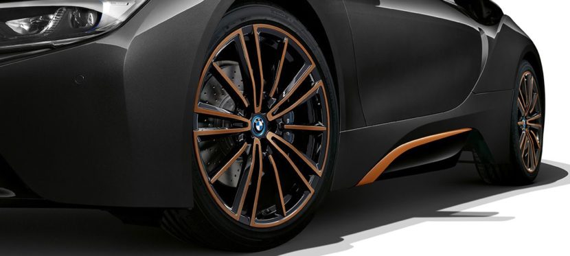 The futuristic outer design is adorned by the deep Sophisto Grey metallic paint finish, which also gives the name of this limited i8 series. Further electrifying styling features comprise the E-Copper body accents and the 20-inch BMW i light-alloy wheels with radial-spoke design and E-Copper finish.