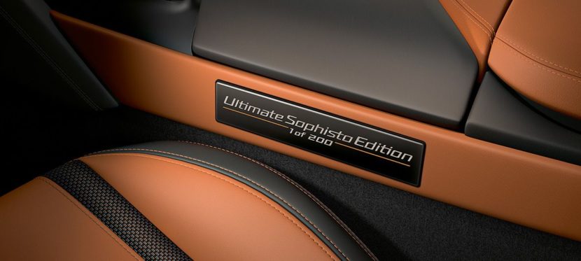 The cabin of the i8 Ultimate Sophisto Edition is likewise special: to 200-unit limited series i8 receives a unique Accaro interior in dual Black/E-Copper cloth/leather upholstery. In addition, the door sills bear the inscription “Ultimate Sophisto Edition 1 of 200”, which is repeated on the labels installed on the sides of the central tunnel. Furthermore, the electronic sport gearbox selector and the iDrive controller are coated in ceramic material. The Coupe variant also boasts a anthracite-colored roofliner.