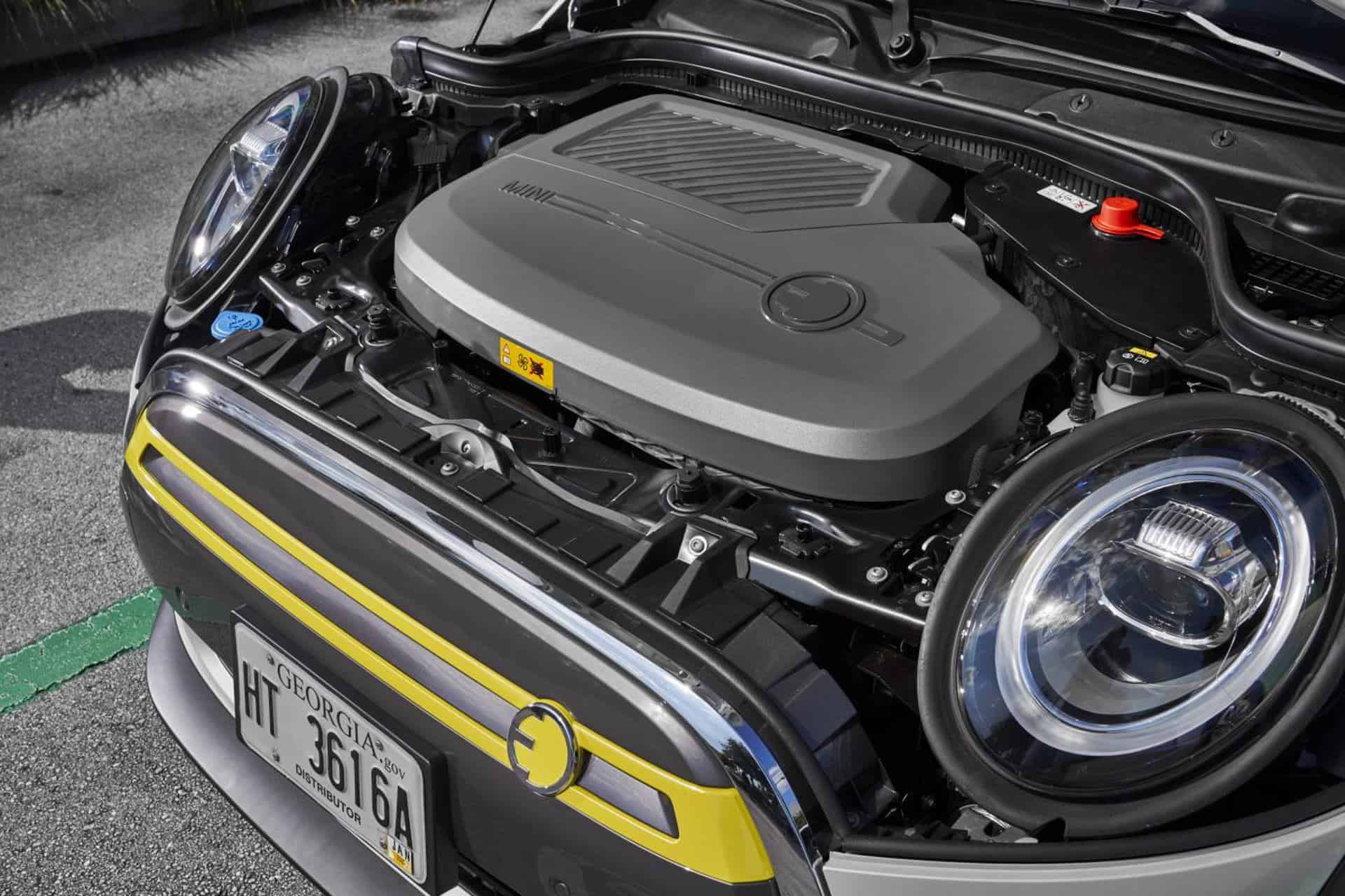 The MINI Cooper SE has a 181 hp (135kW) electric motor that makes 199 lb-ft of torque and is the same motor used in the BMW i3. The MINI Cooper SE, however, is a typical MINI and front wheel drive versus the BMW i3 which is rear-wheel drive. The electric engine is tucked neatly under the front bonnet. While the BMW i3 runs the 0-60 mph in 6.8 seconds, the MINI Cooper SE does it in 6.9. Top speed on the MINI Cooper SE is 93 vs. 98 mph in the i3.