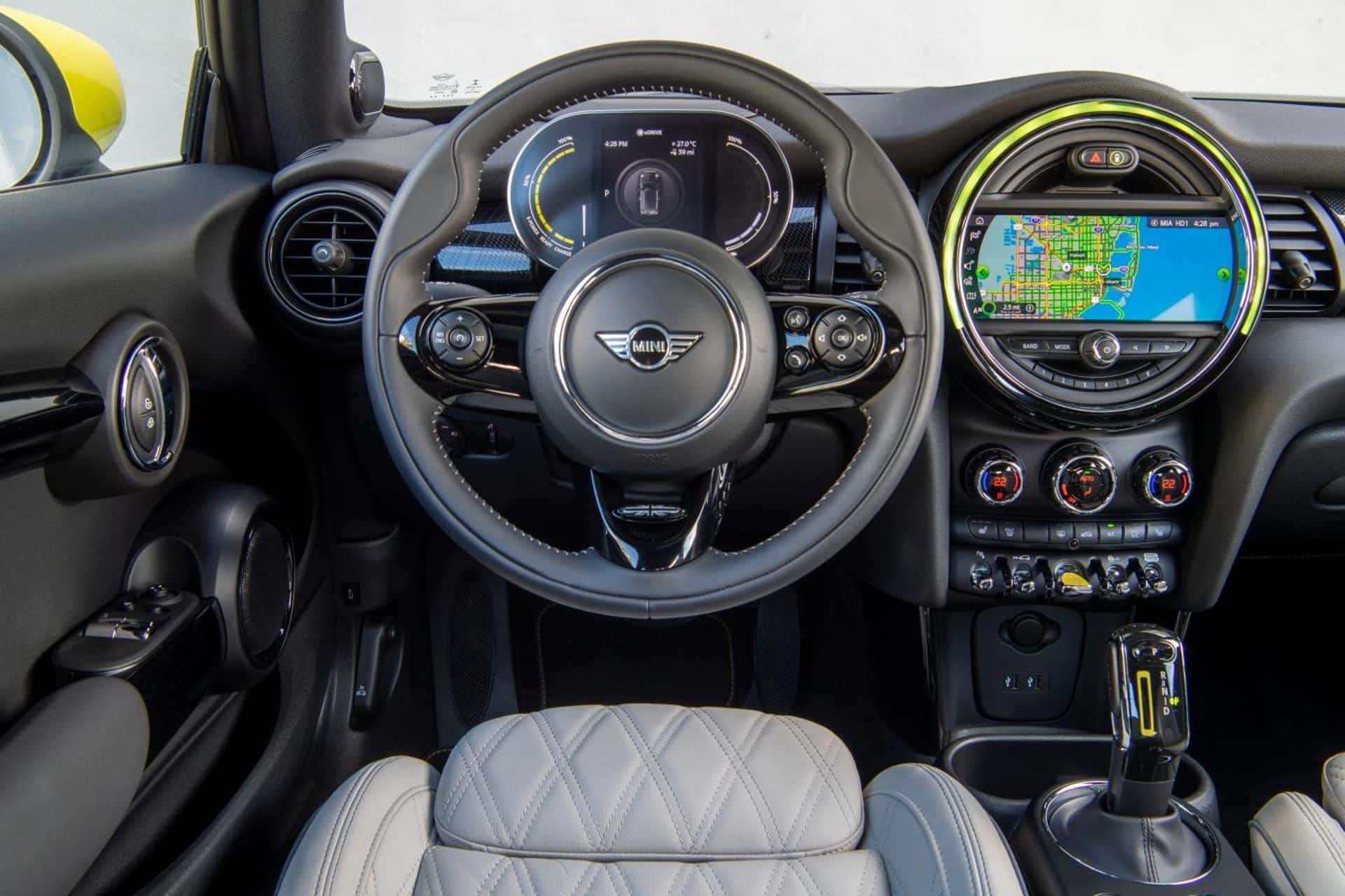Using a smartphone app, MINI Cooper SE owners can pre-condition their car: warming up the battery pack and heating or cooling their car’s interior to a specific temperature. There are also heated front seats, but no heated steering wheel.