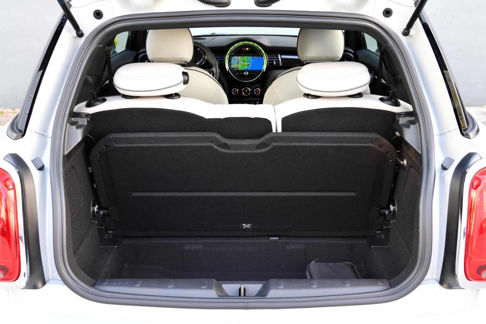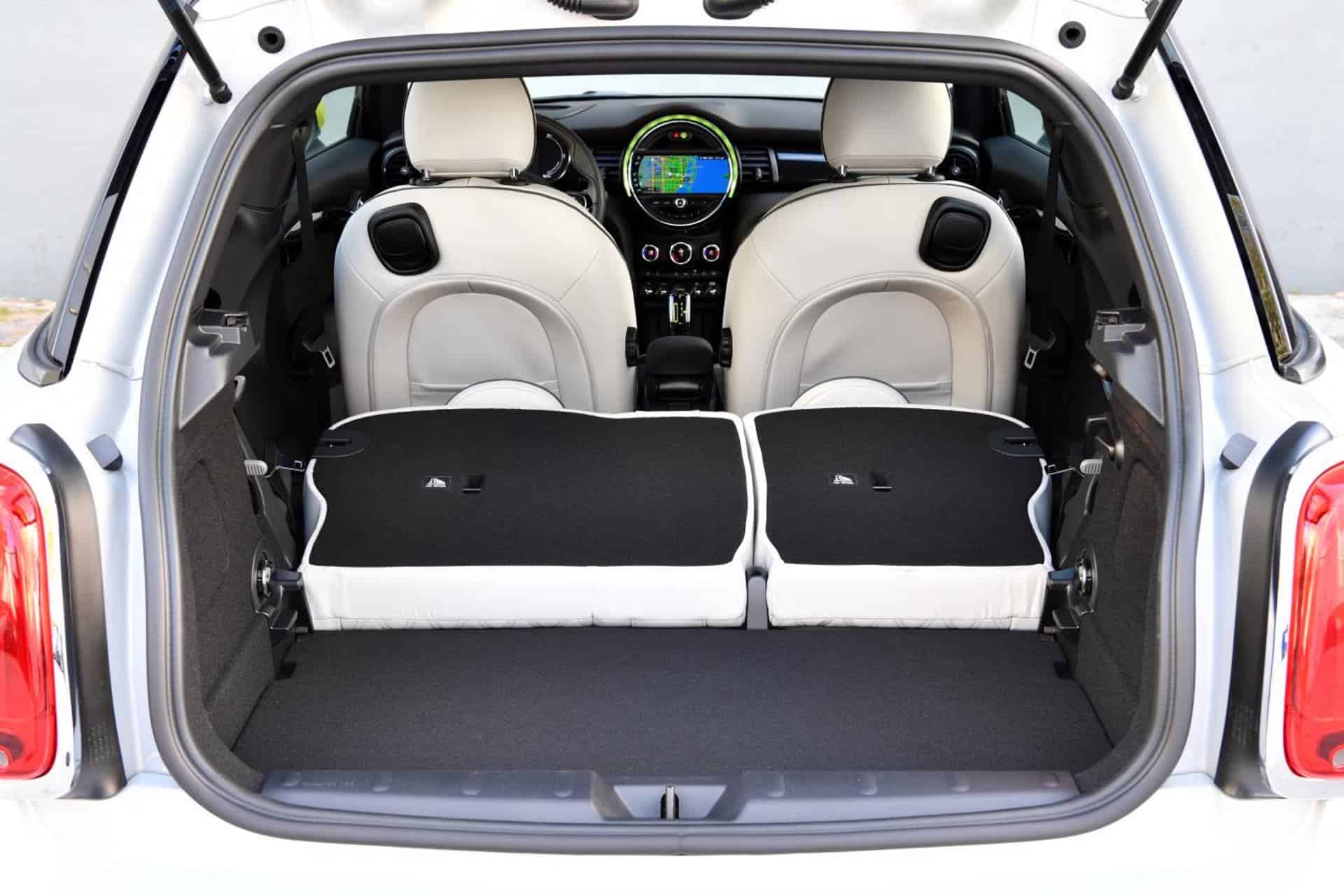 As in the MINI 3 Door with combustion engine, the luggage volume under the tailgate is 7.4 cubit feet (211 liters), expanding to 25.8 (731 liters) when the rear backrests are folded down. So there is plenty of room to fit your luggage.
