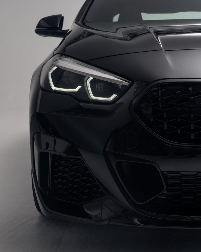 The result is actually a quite stunning BMW 2 Series Gran Coupe which hasn’t been often loved by the pundits. The kidneys, exterior mirrors, air intakes, tailpipes and rear spoiler are black, and the details in Cerium Gray that are common to the M Performance models are omitted.