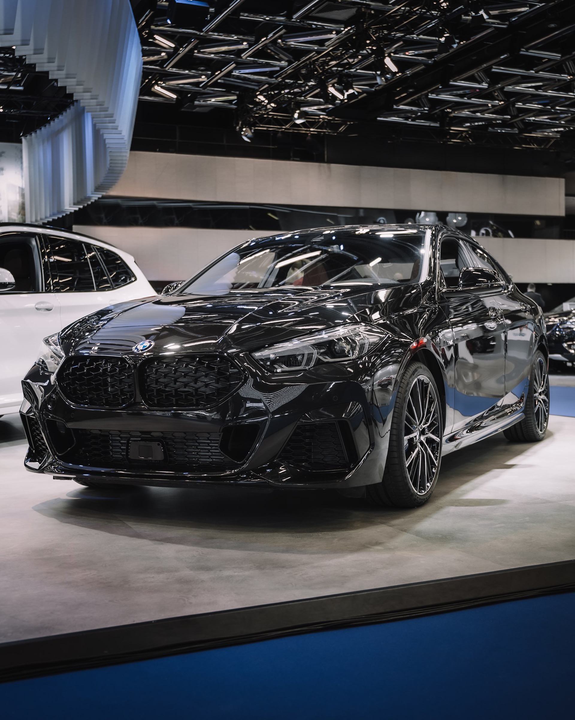 The BMW 2 Series Gran Coupe is presented in a completely black configuration at the 2020 Montreal Auto Show. In Canada, those responsible for the BMW lineup have decided not only to display the current top model M235i with a black paint finish, but also with the extended Shadow Line. The latter is currently only available as part of the M Performance package for the M235i Gran Coupe.