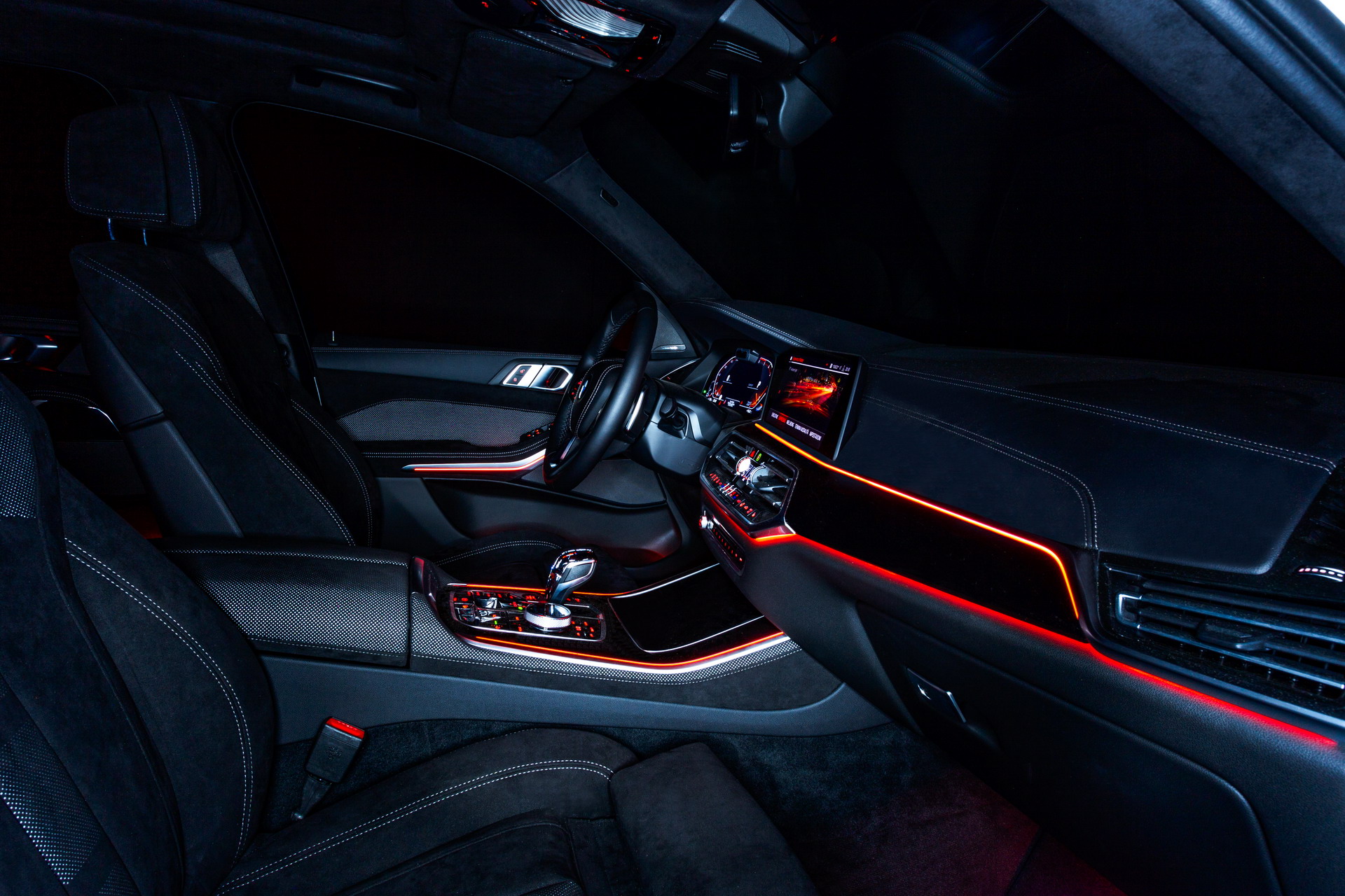 The interior of the BMW X5 Timeless Edition has been entirely developed and customized by leather specialist Alcantara with an eye for both off-road and normal on-road use. Alcantara, in fact, is a resistant, light, easy to clean material and allows perfect adherence. The front and rear seats are covered in black Alcantara leather, in both plain and perforated patterns.