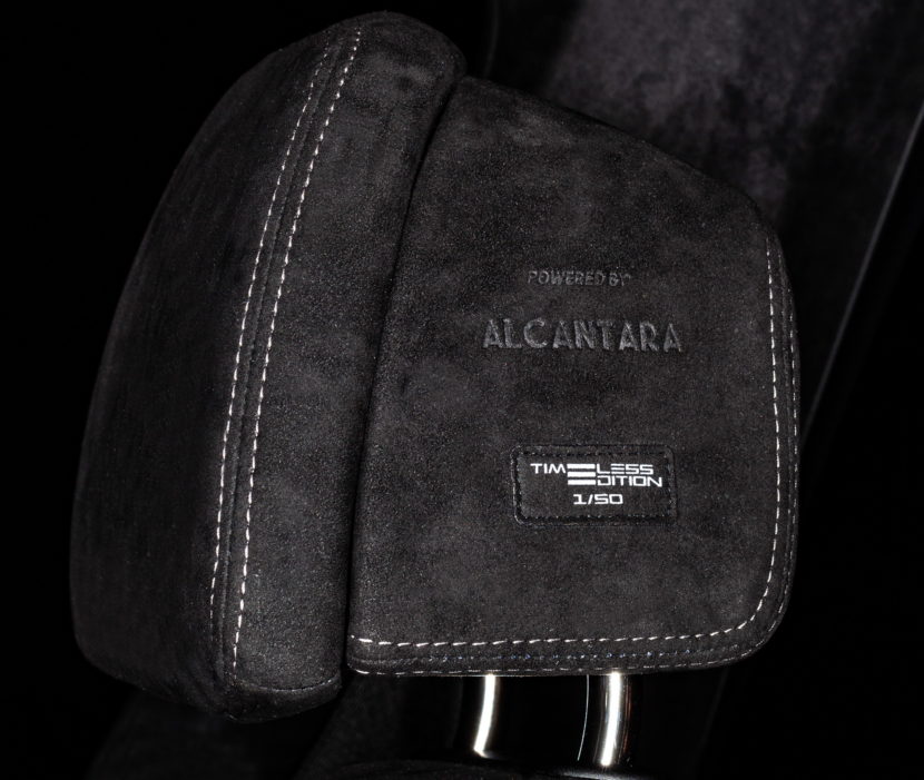 The side, center-oriented section of the front passenger’s headrest has undergone further customization. The “powered by Alcantara” writing, made in electro-welding, and the celebratory label “Timeless Edition 1/50” make this precious Limited Edition even more unique. Also, as part of the Timeless Edition, the special BMW X5 is delivered with a stylish travel bag made of Alcantara, with the same interior design of the car.