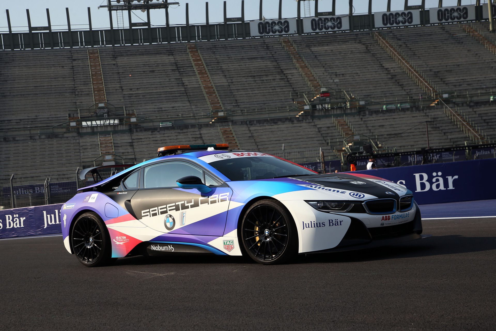 Less than five minutes into the race, the safety car was deployed to remove Nico Muller’s Dragon car from the Turn 1 barrier after the Swiss driver outbraked himself attempting to overtake Nyck de Vries’s Mercedes-Benz around the outside of Turn 1. It was a heavy hit straight into the barriers, but luckily Muller emerged unharmed from his cockpit. The new-look BMW i8 that operates as the safety car for the series would lead the pack through the pitlane to make room for the track marshals to work on extracting the Dragon car from the barriers.