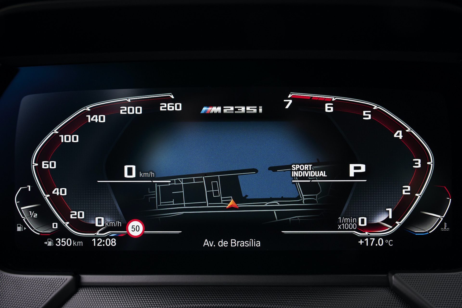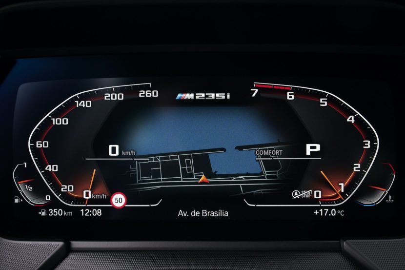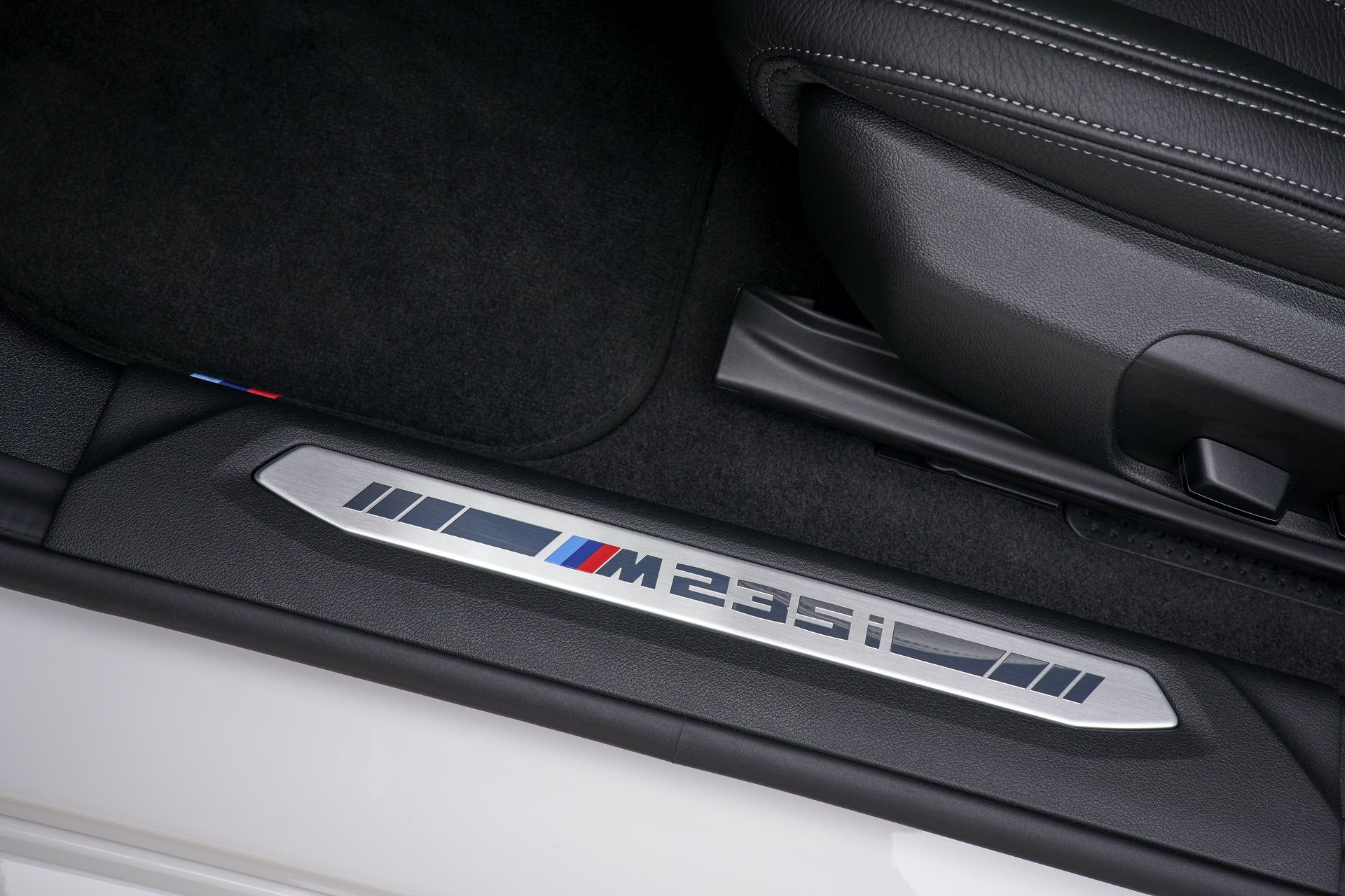 You can also tell that it’s catered to a younger audience from the inside. The cabin of the BMW M235i is very sporty looking and has some features that are specifically designed to appeal to millennials. For instance, the dashboard and door trim have a cool pattern on them but they’re also both back-lit.
