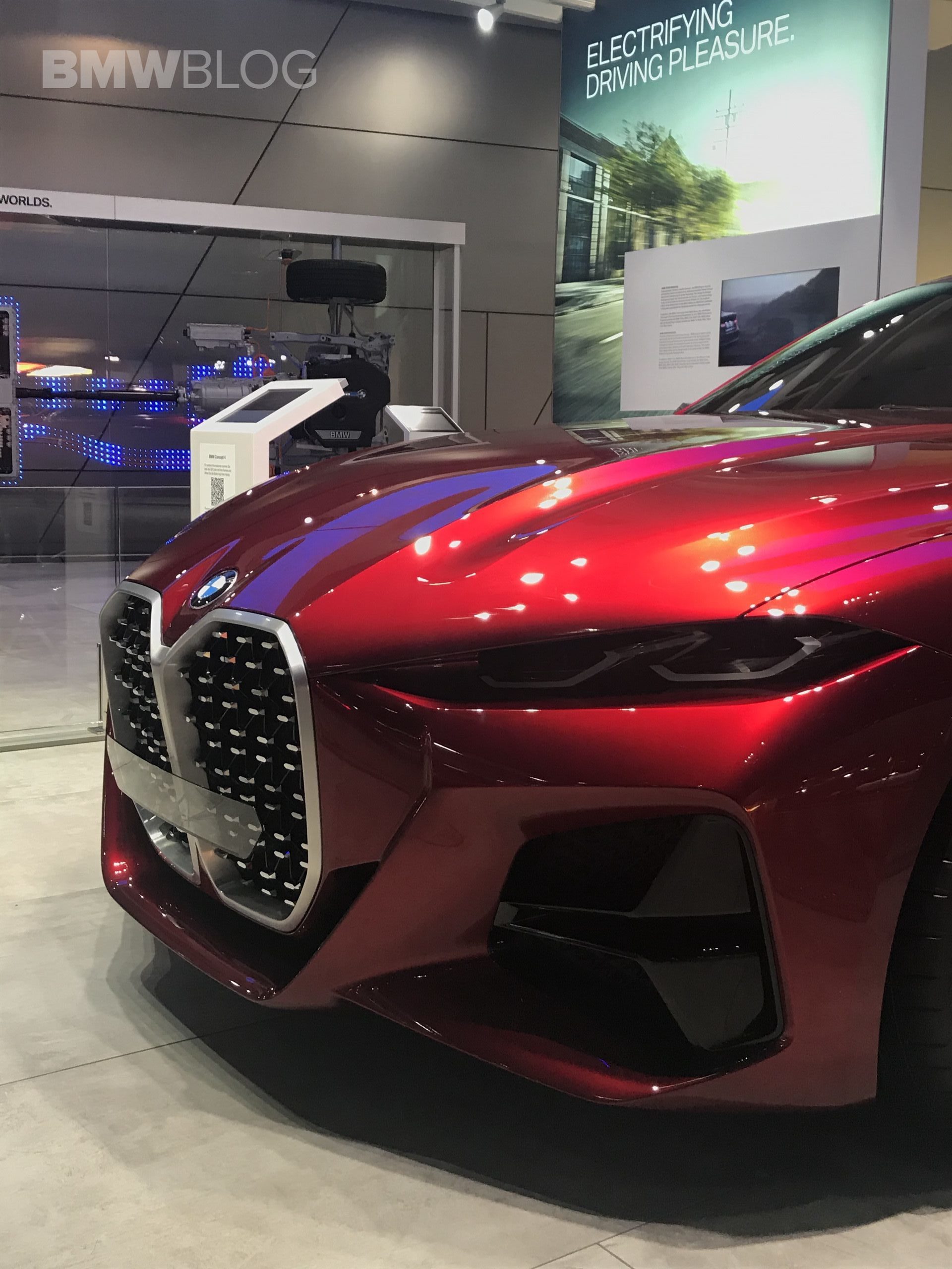 First of all you need to see and understand the BMW Concept 4 as a whole. When I first walked up to the car my nose was basically next to the grille. But that’s, of course, a limited view. If you take back a few steps, you will notice the overall sporty and sleek design of the Concept.