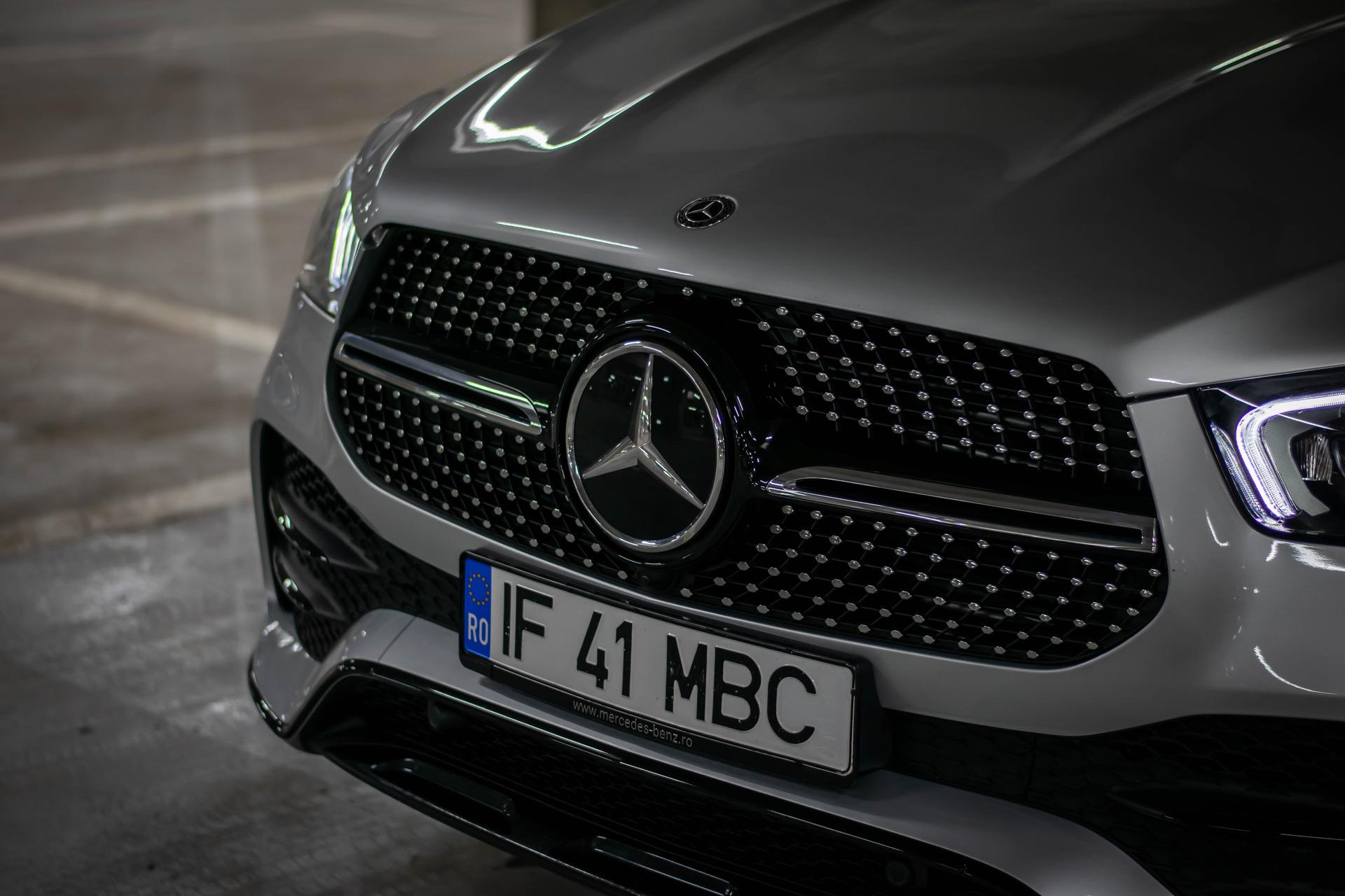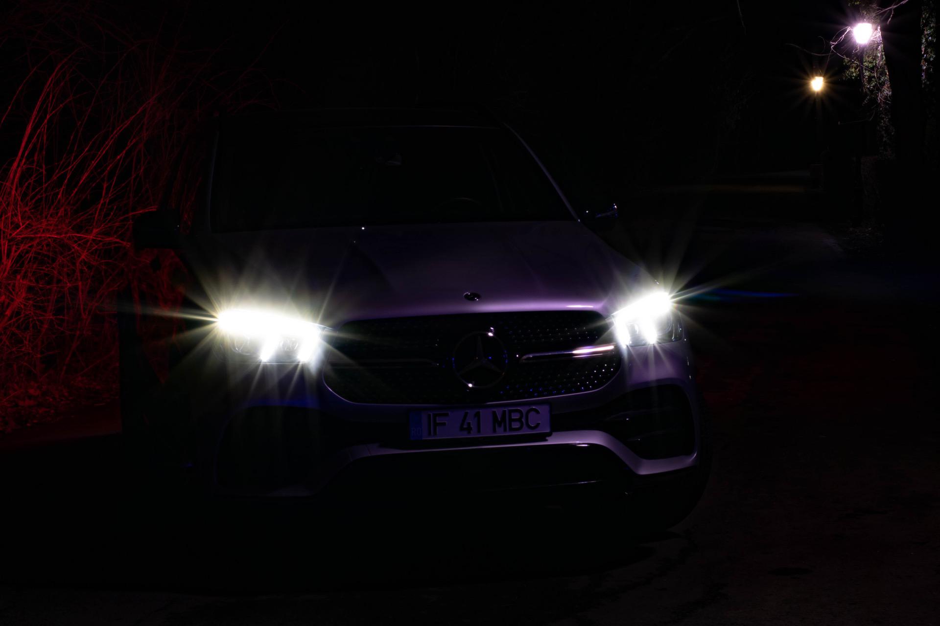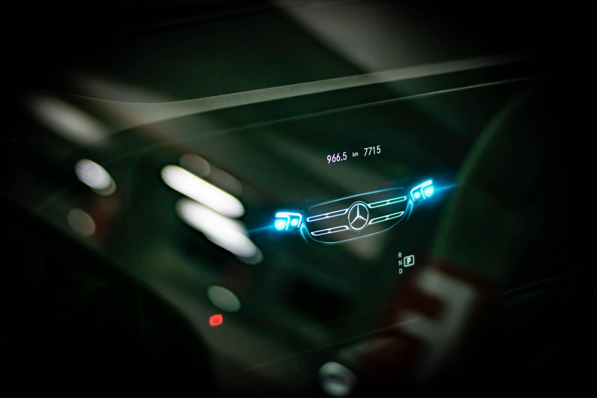 Up front you’ll notice the same headlight design you’ll find on newer Mercedes-Benz models out there. It feels vaguely familiar and reminds me both of the new Mercedes-Benz CLS and the new A-Class. There are two LED stripes in the headlights and a massive center grille dominated by the silver arrows badge.