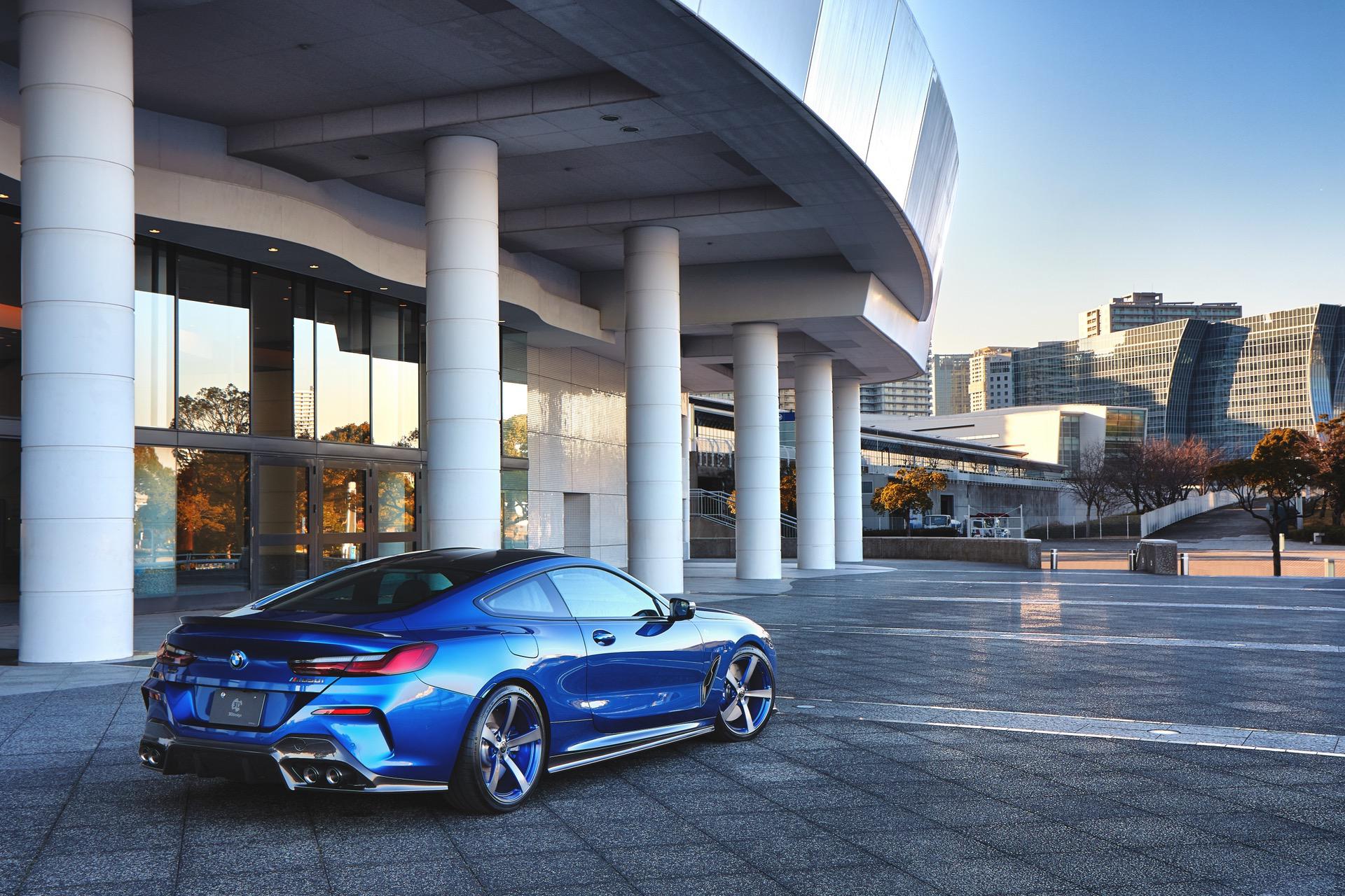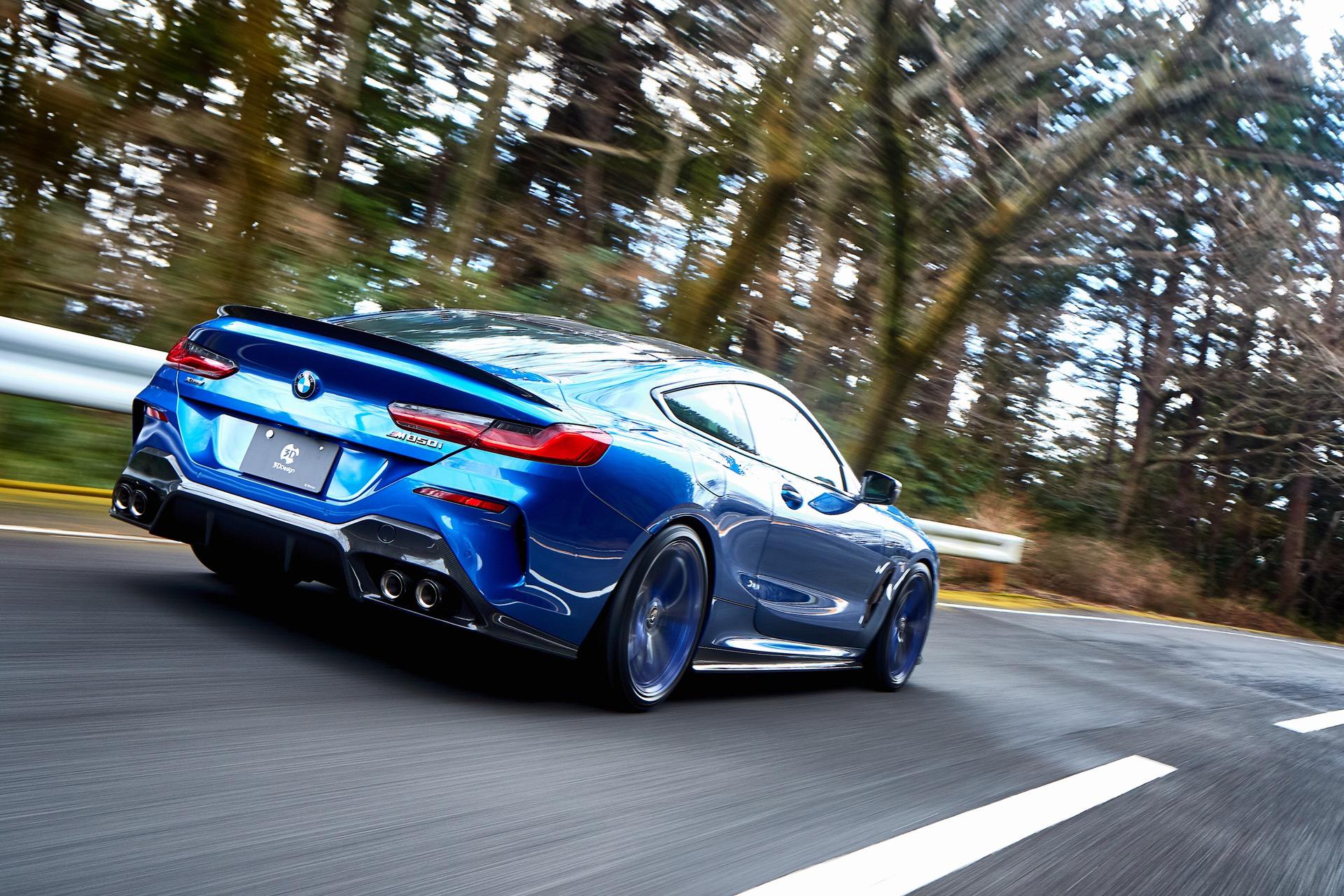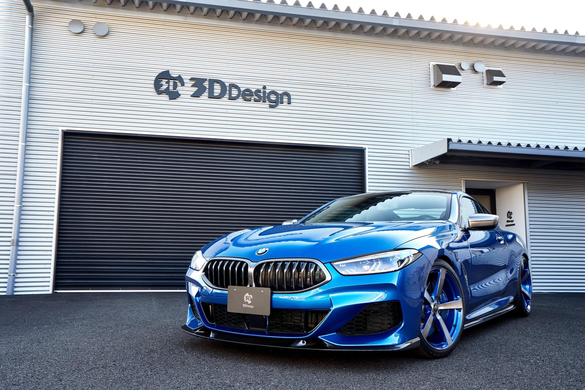 The trunk spoiler is currently available for the coupe, but a cabriolet version is also in development. The rear diffuser on either model is prepared for both the OEM exhaust and the the 3D Design system. The BMW 8 Series also gets some new 3D Design wheels, with blue accents to match the body color, as well as coilover suspension. Body stripes are also available on both 8 Series models.