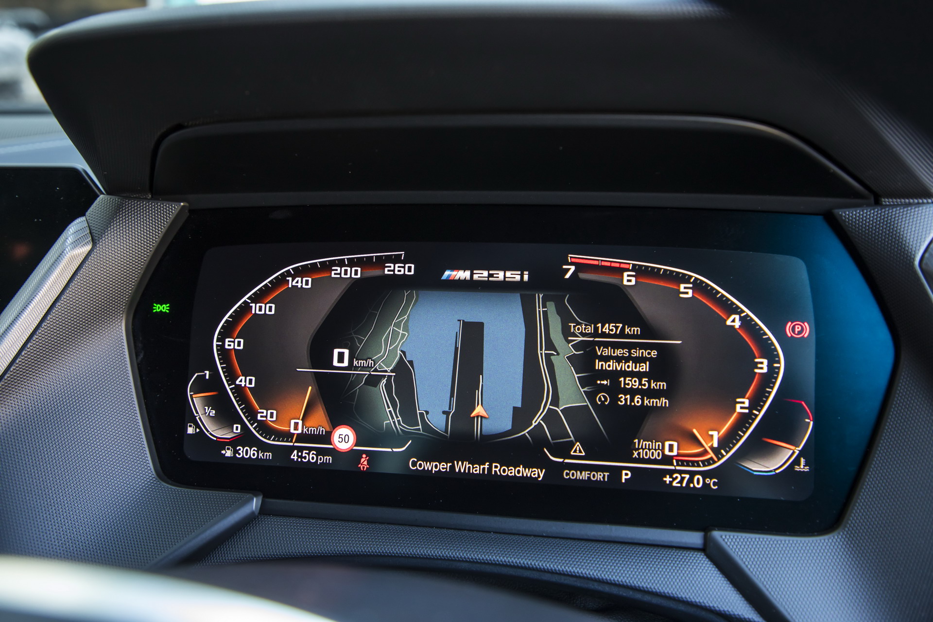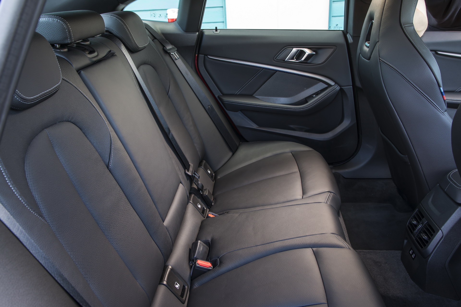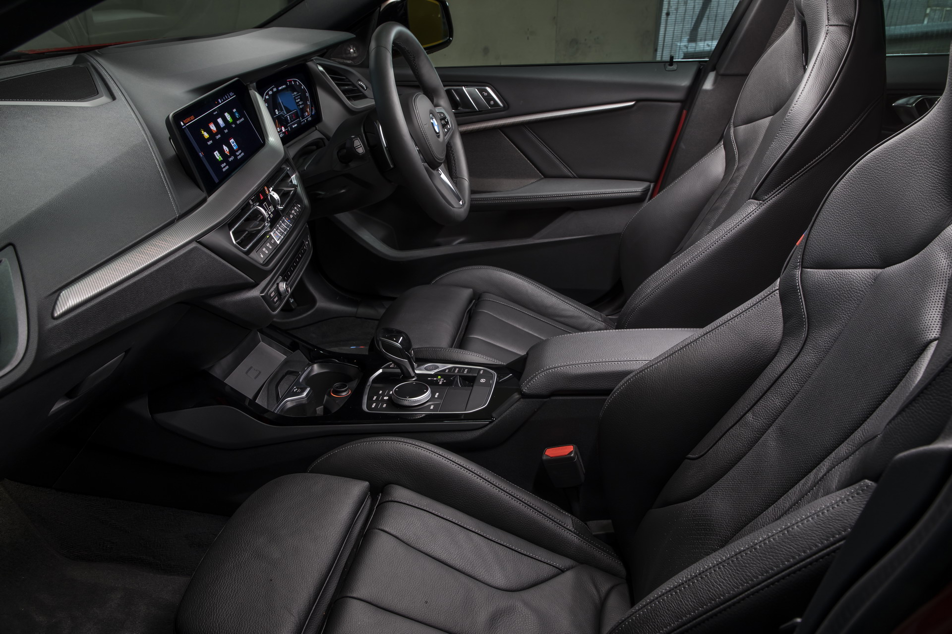 The M235i xDrive Gran Coupe is certainly a looker finished in Melbourne Red metallic color, with the 19″ V-spoke M alloys and the Cerium Grey accents adding further style and boldness to the overall exterior styling. Inside you’re getting a black-tone trim and the typical driver-oriented BMW dashboard.