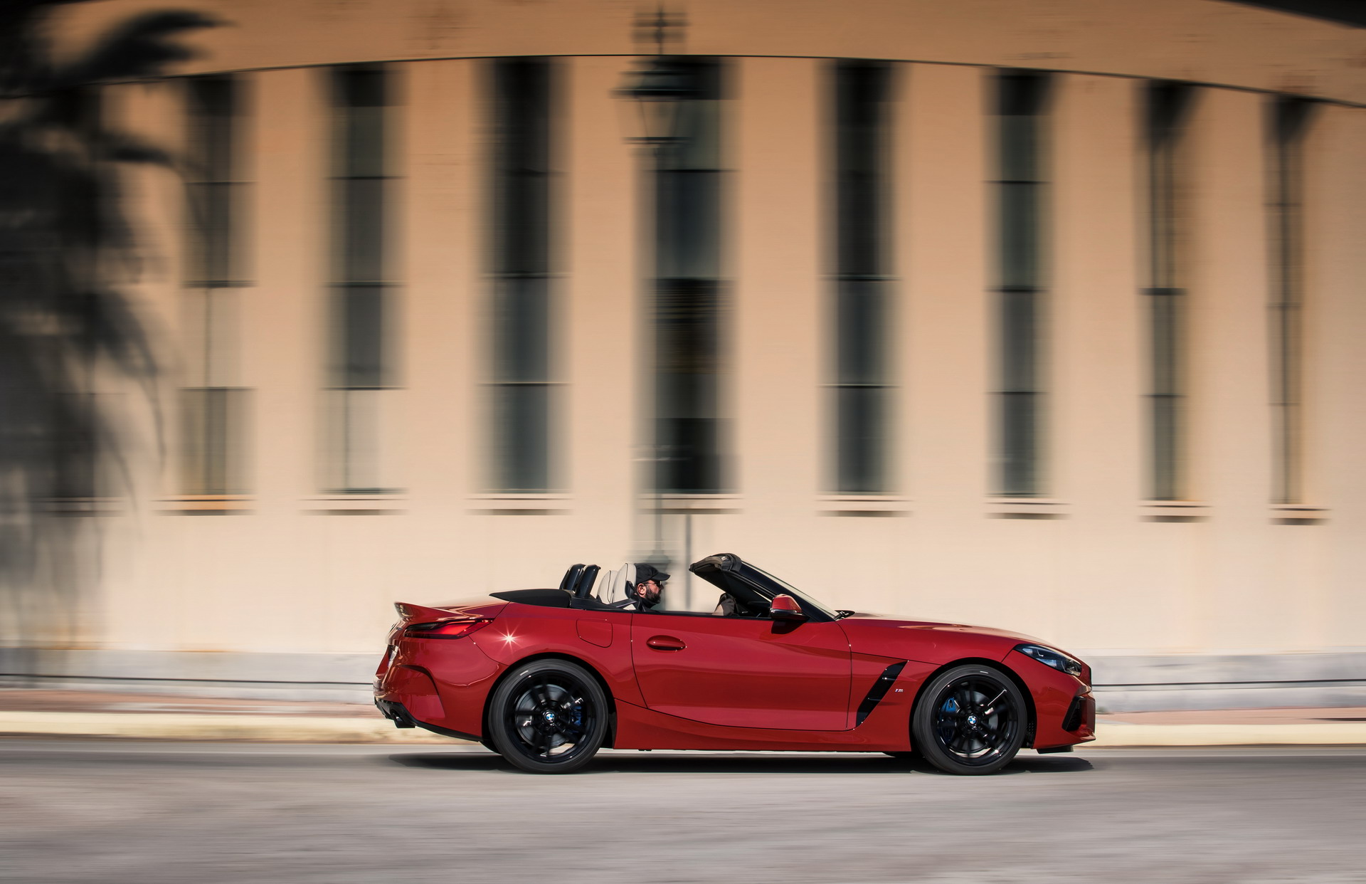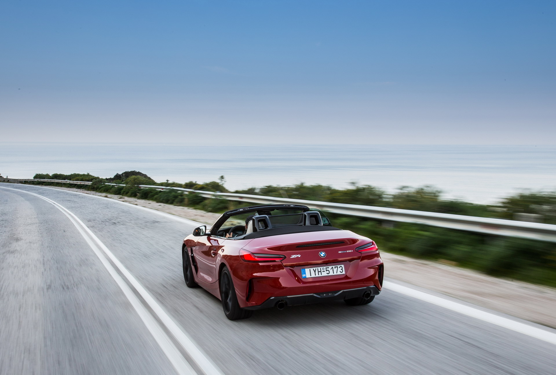 In the latest set of images, the new BMW Z4 sDrive20i M Sport is photographed in the picturesque scenery around Athens, the capital city of Greece. The combination of the all-black BMW Individual high-gloss Shadow Line and the striking San Francisco Red metallic paint finish is simply charming to admire in the epic Mediterranean landscape.